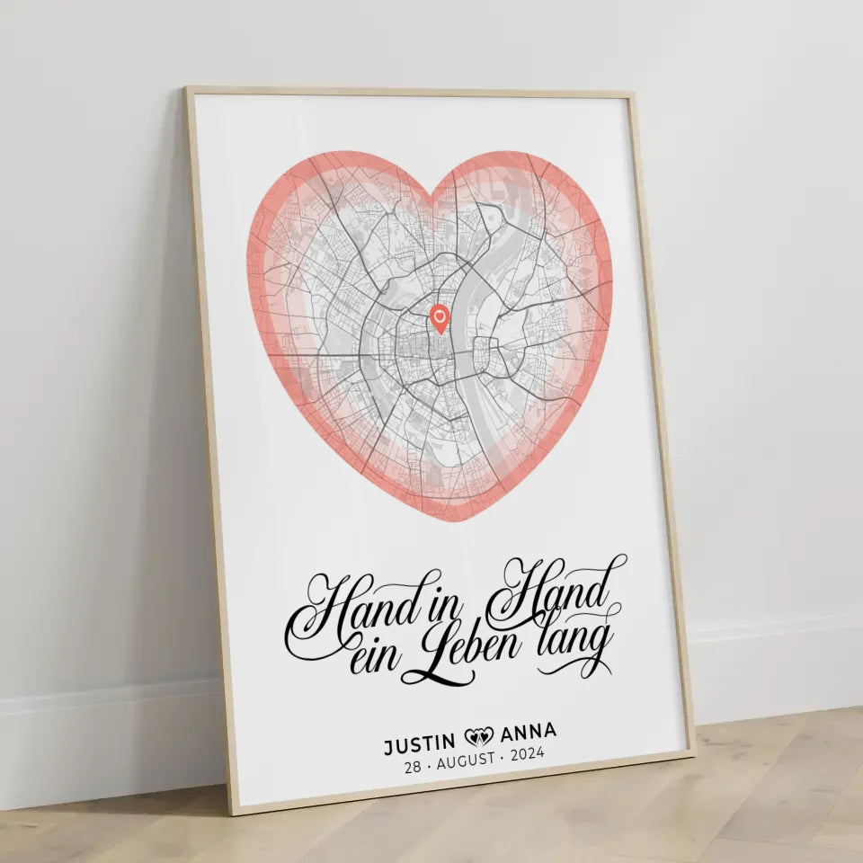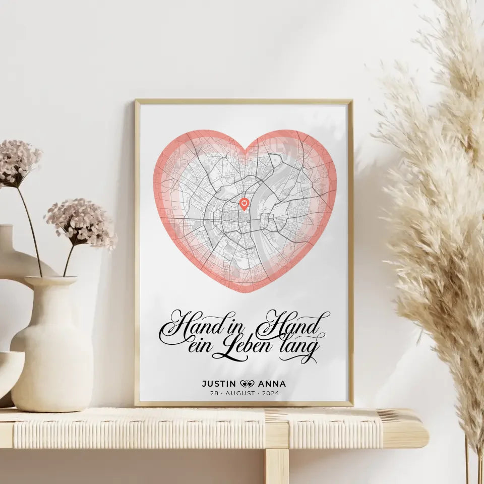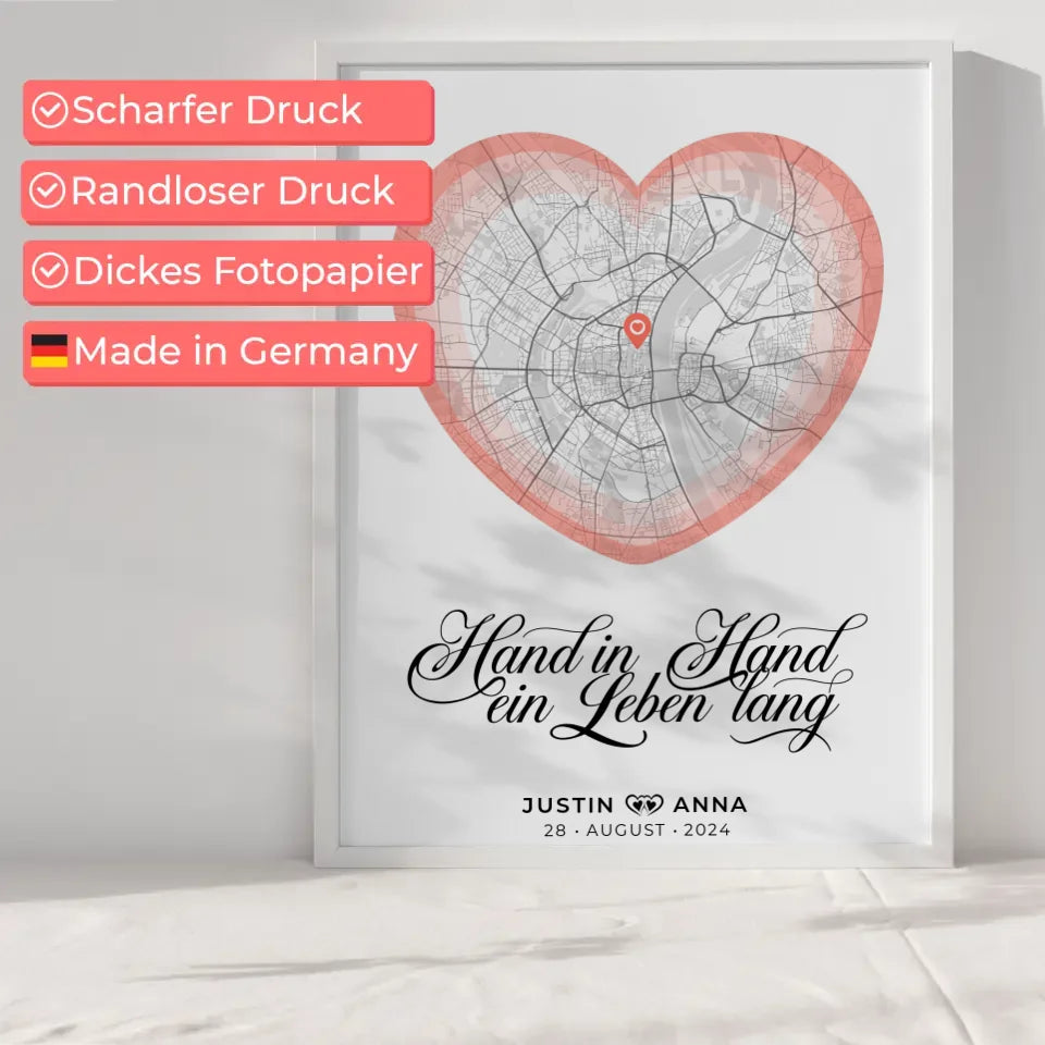 Personalisiertes Stadtkarten Poster Paare Herz Hand In Hand Ein Leben Lang