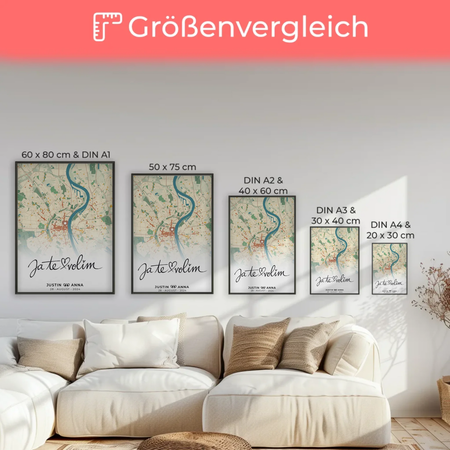 Personalisiertes Stadtkarten Poster Paare Ja Te Volim Retro Wo Alles Begann