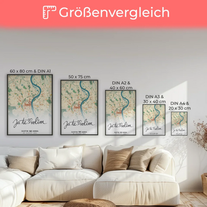 Entdecke das perfekte Geschenk für deine Liebsten mit unserem 'Personalisiertes Stadtkarten Poster Paare Ja Te Volim Retro Wo Alles Begann'. Dieses einzigartige Poster ist nicht nur ein wahrer Hingucker, sondern auch eine liebevolle Erinnerung an den besonderen Ort, an dem eure gemeinsame Geschichte begann. Du kannst die Karte mit einem Ort deiner Wahl, den Namen des Paares und einem eigenen Spruch oder Wunschtext personalisieren. Egal ob zum Valentinstag, zum Geburtstag oder zu Weihnachten, dieses personalisierte Geschenk sorgt garantiert für Freude und emotionale Momente. Der wunderschöne Spruch 'Ja Te Volim' verleiht dem Design eine romantische Note und macht jedes Poster zu einem unverwechselbaren Unikat. Lass deine Kreativität freien Lauf und kreiere ein Geschenk, das von Herzen kommt. Unsere Stadtkarten Poster sind in einem stilvollen Retro-Look gehalten und bringen eine besondere Atmosphäre in jedes Zuhause. Überrasche dein Lieblingspaar mit diesem einzigartigen, personalisierten Kunstwerk und erinnere sie an den Ort, wo alles begann. Schenke Liebe in Form eines 'Personalisierten Stadtkarten Posters' - es wird ein Geschenk, das für immer bleibt!