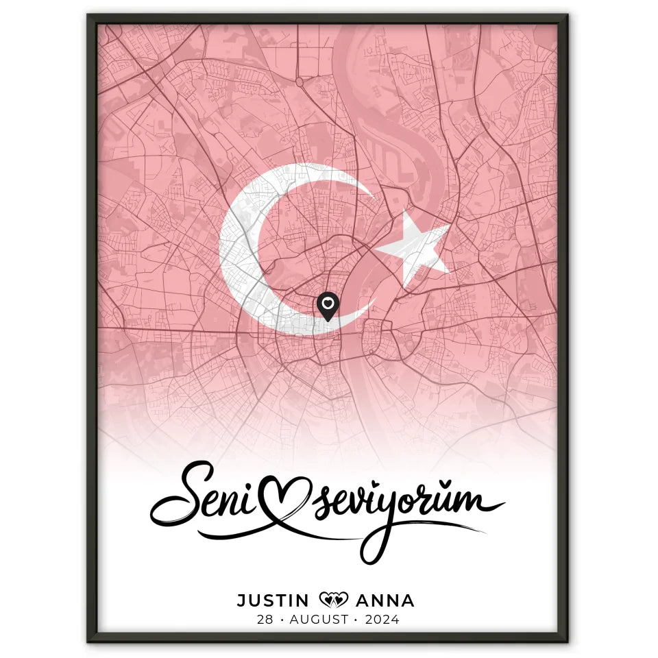 Personalisiertes Stadtkartenposter für Paare Urlaub Türkei Seni Seviyorum