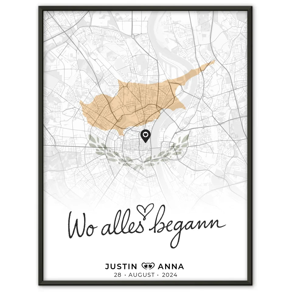 Personalisiertes Stadtkartenposter für Paare: Urlaub Zypern Wo Alles Begann