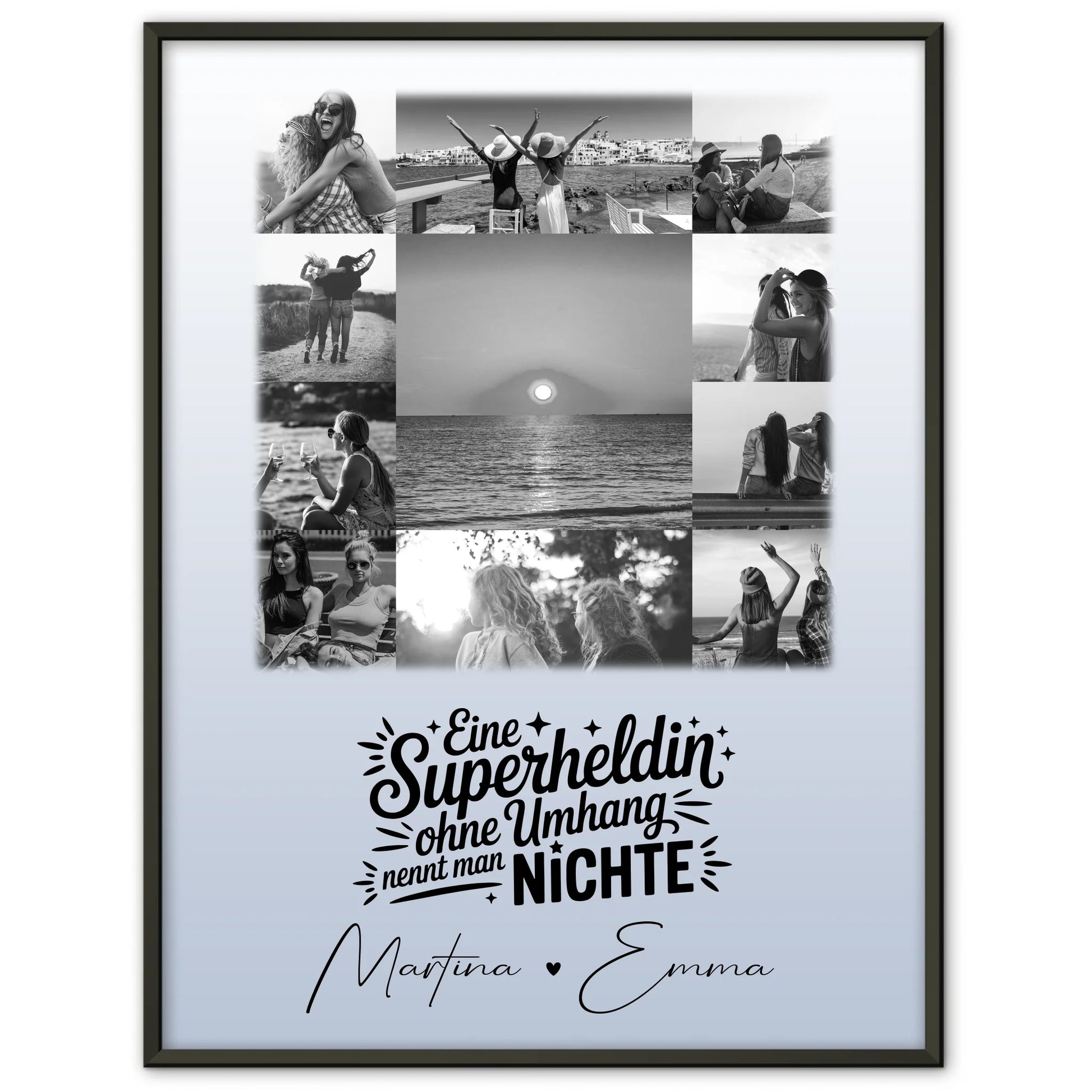 Personalisiertes Wandbild Fotocollage 11 Fotos Lehrerin echte Heldin Schwarz-Weiß