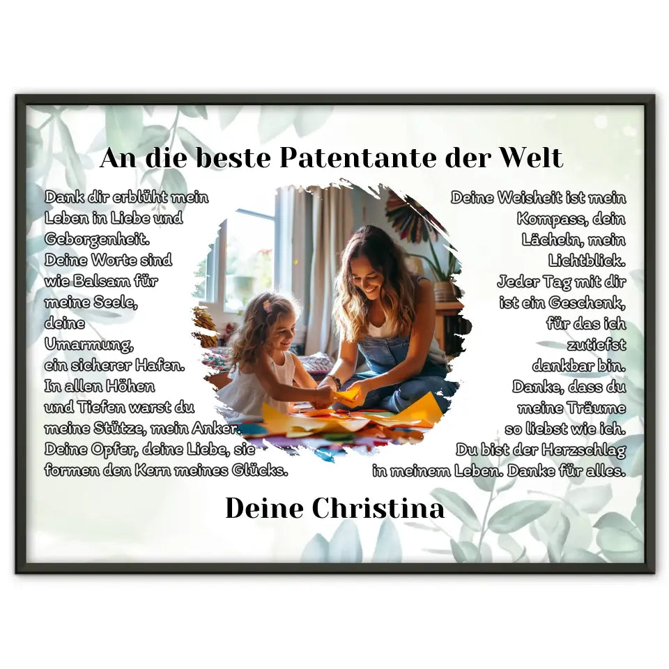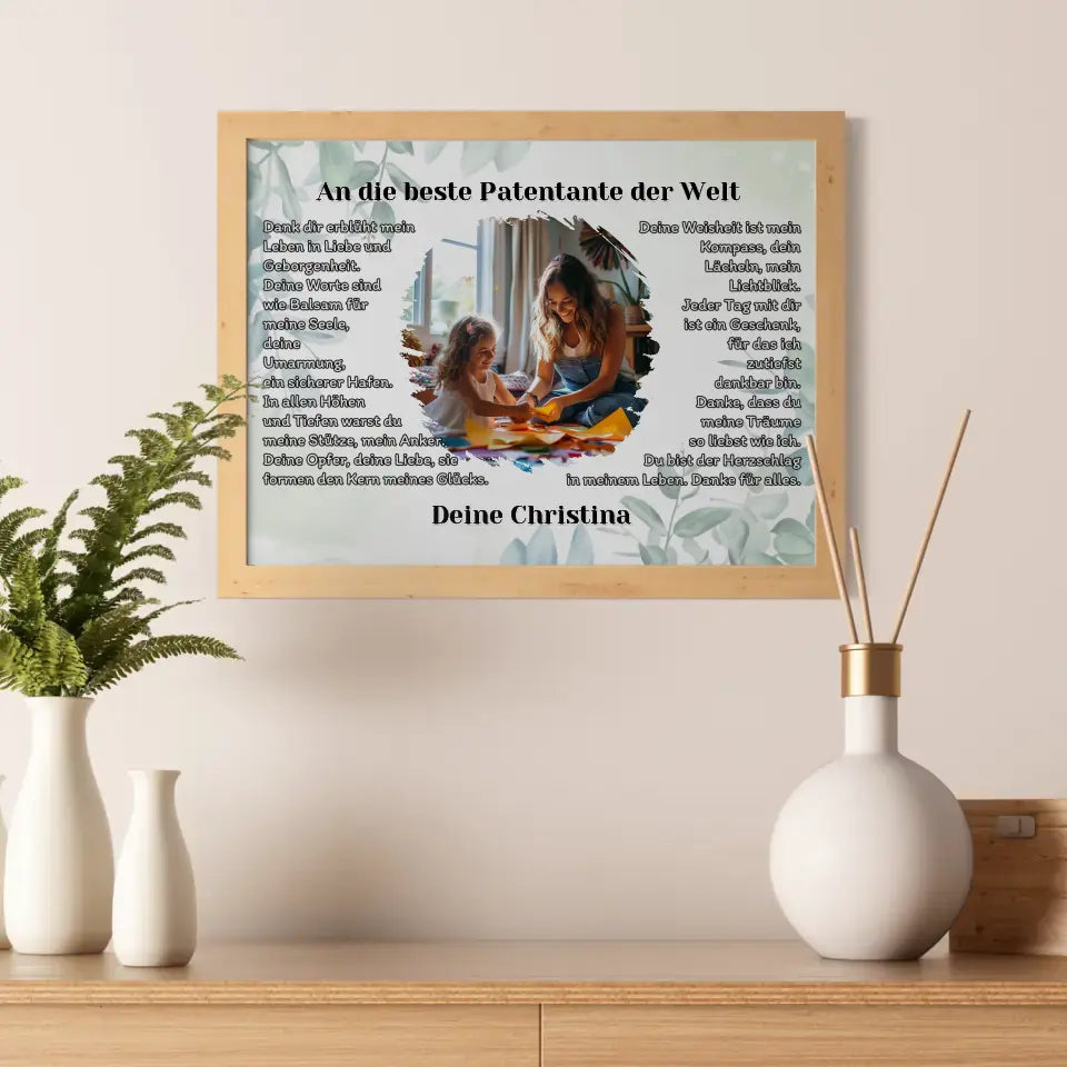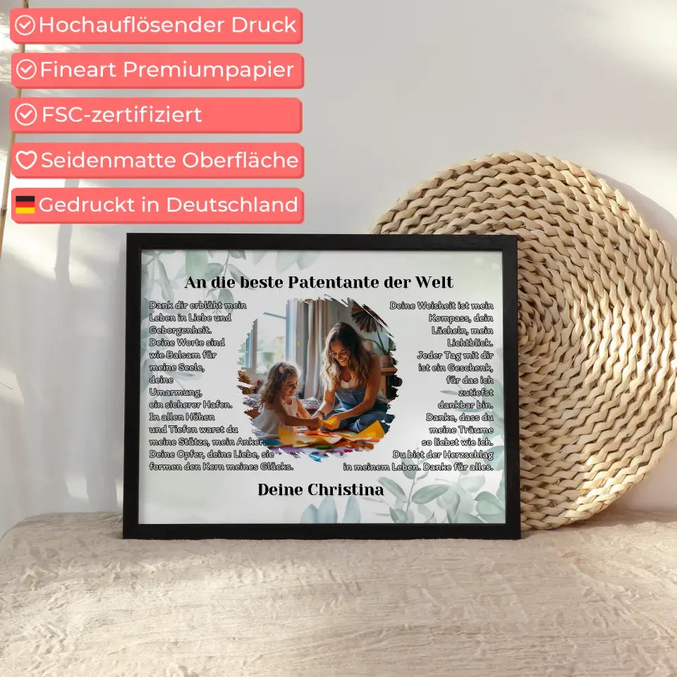 Personalisiertess Poster Geschenk Du bist die Patentante mit Foto