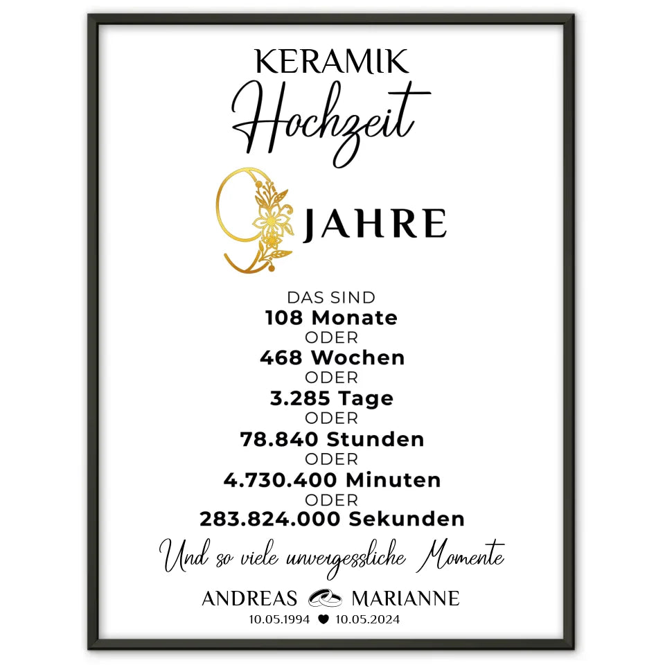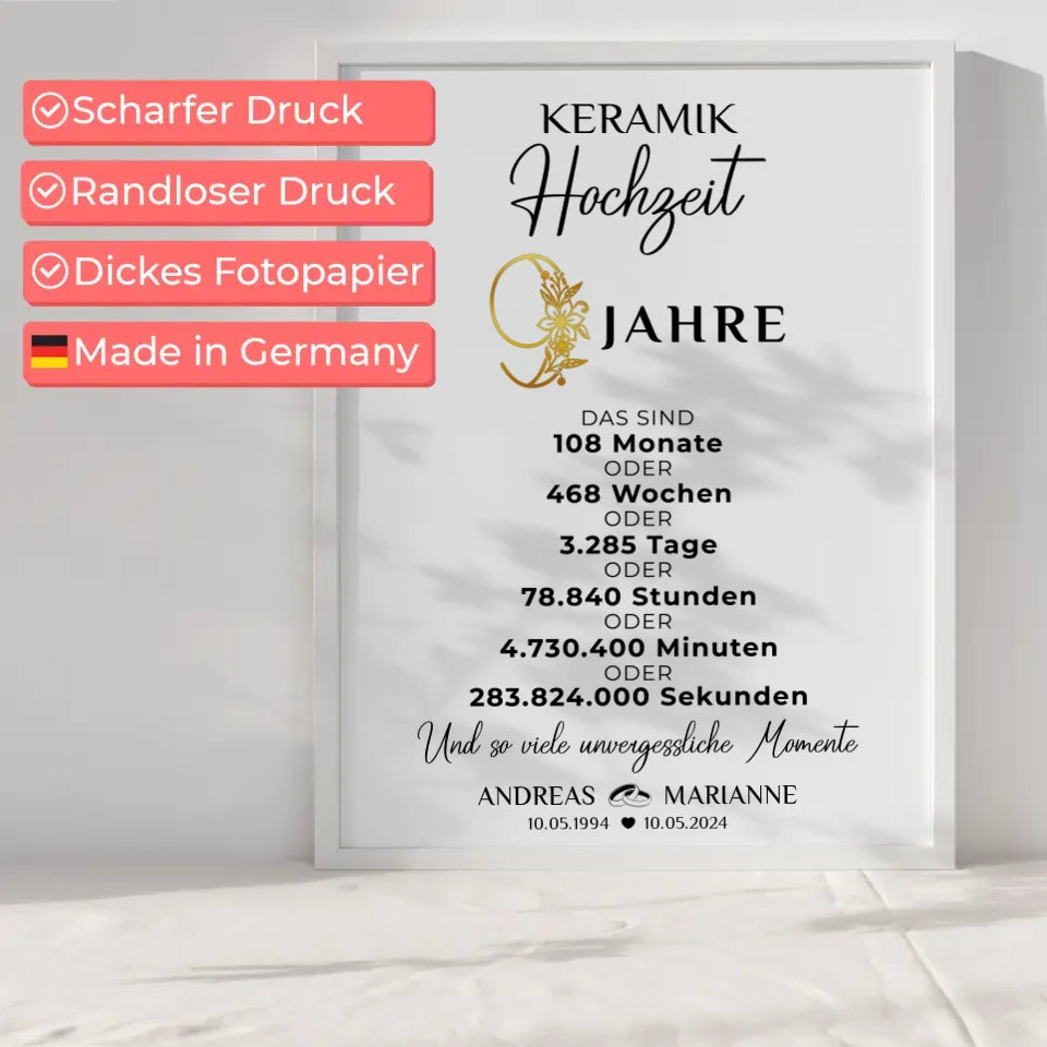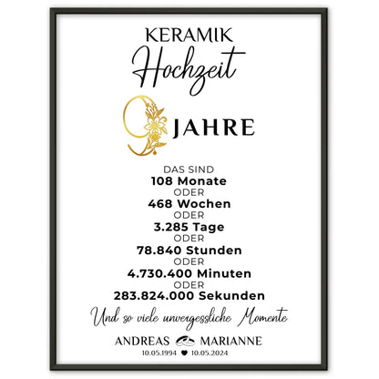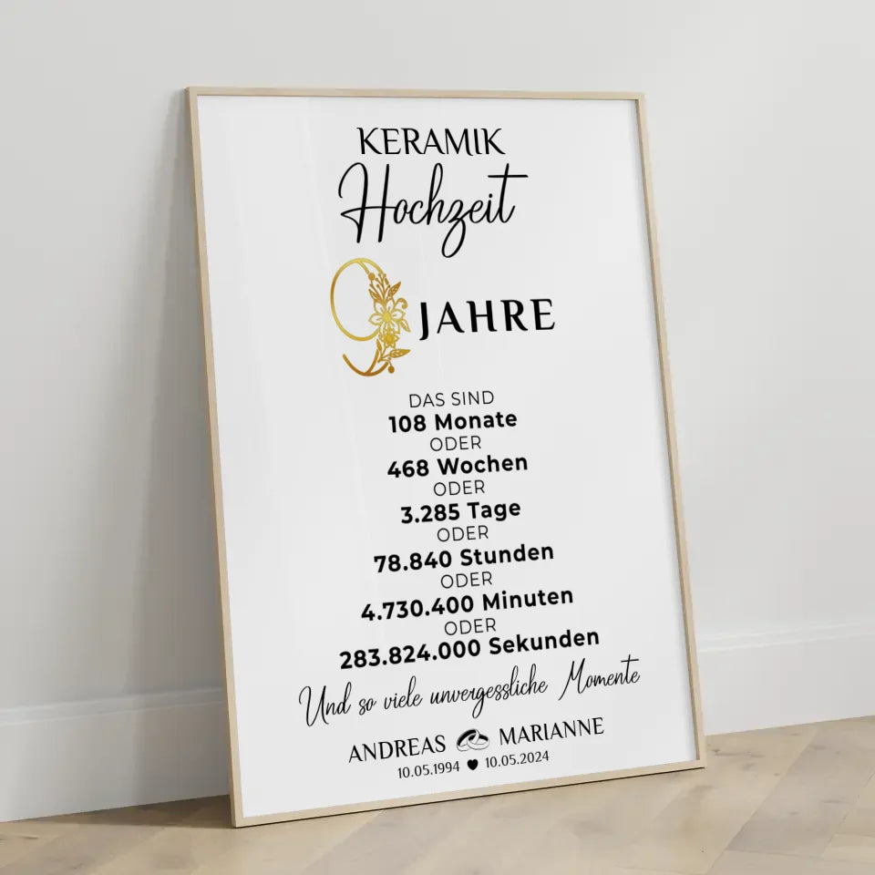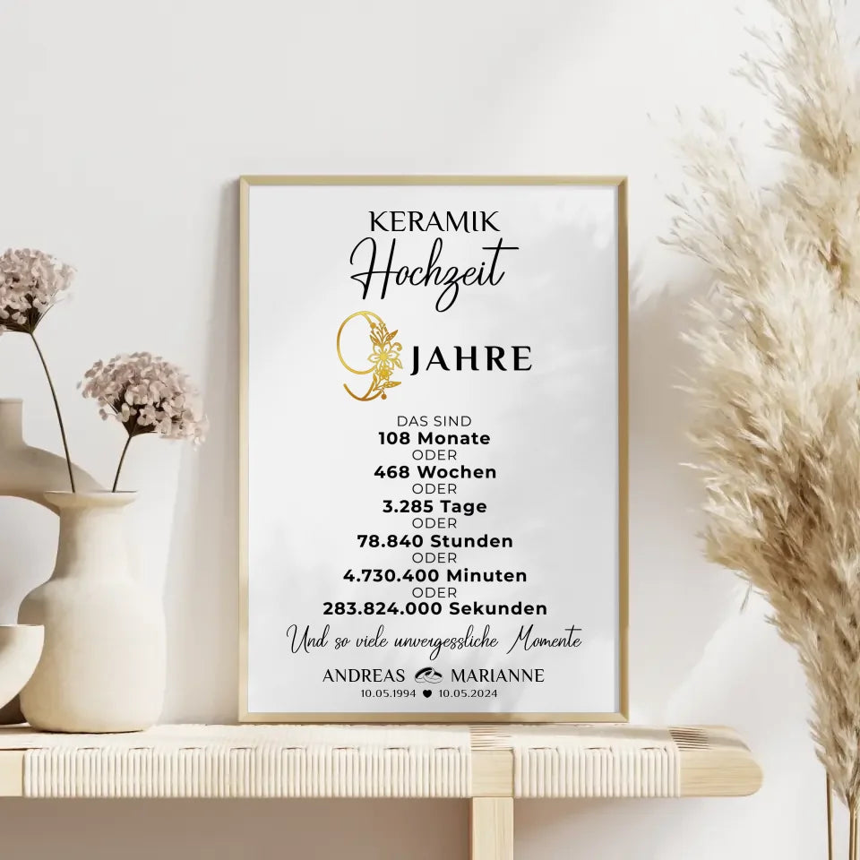 Persönliches Geschenk Poster für den 9 Hochzeitstag zur Keramikhochzeit