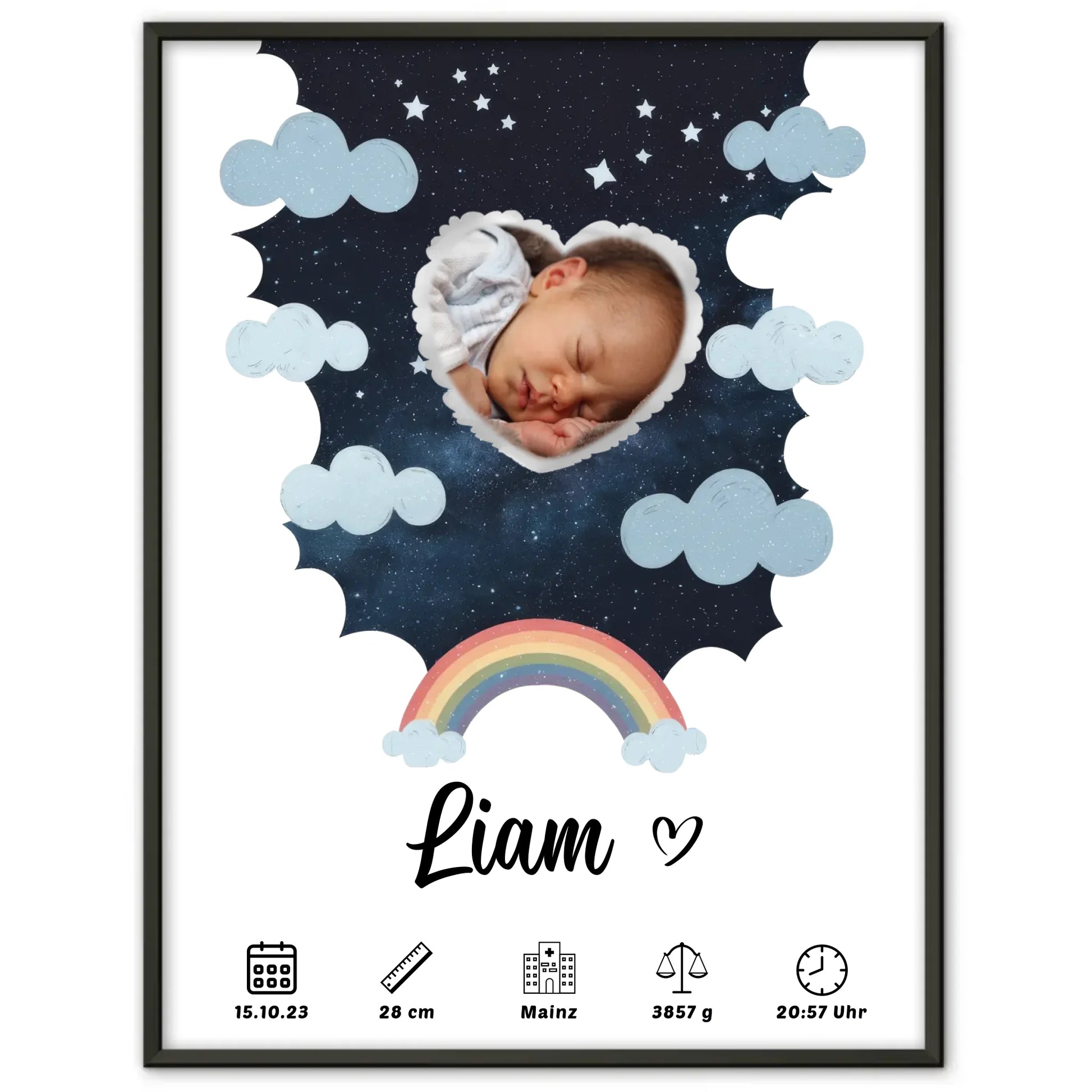 Plakat Poster Geburt für Mädchen und Jungen Foto in Herzform