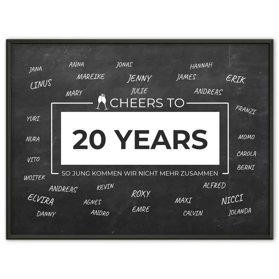 Du würdest gerne etwas einzigartiges schenken? Dann ist Unser Poster als Geschenkidee Cheers To 20 Geburtstag Für Unterschriften ein schickes personalisiertes Geschenk.