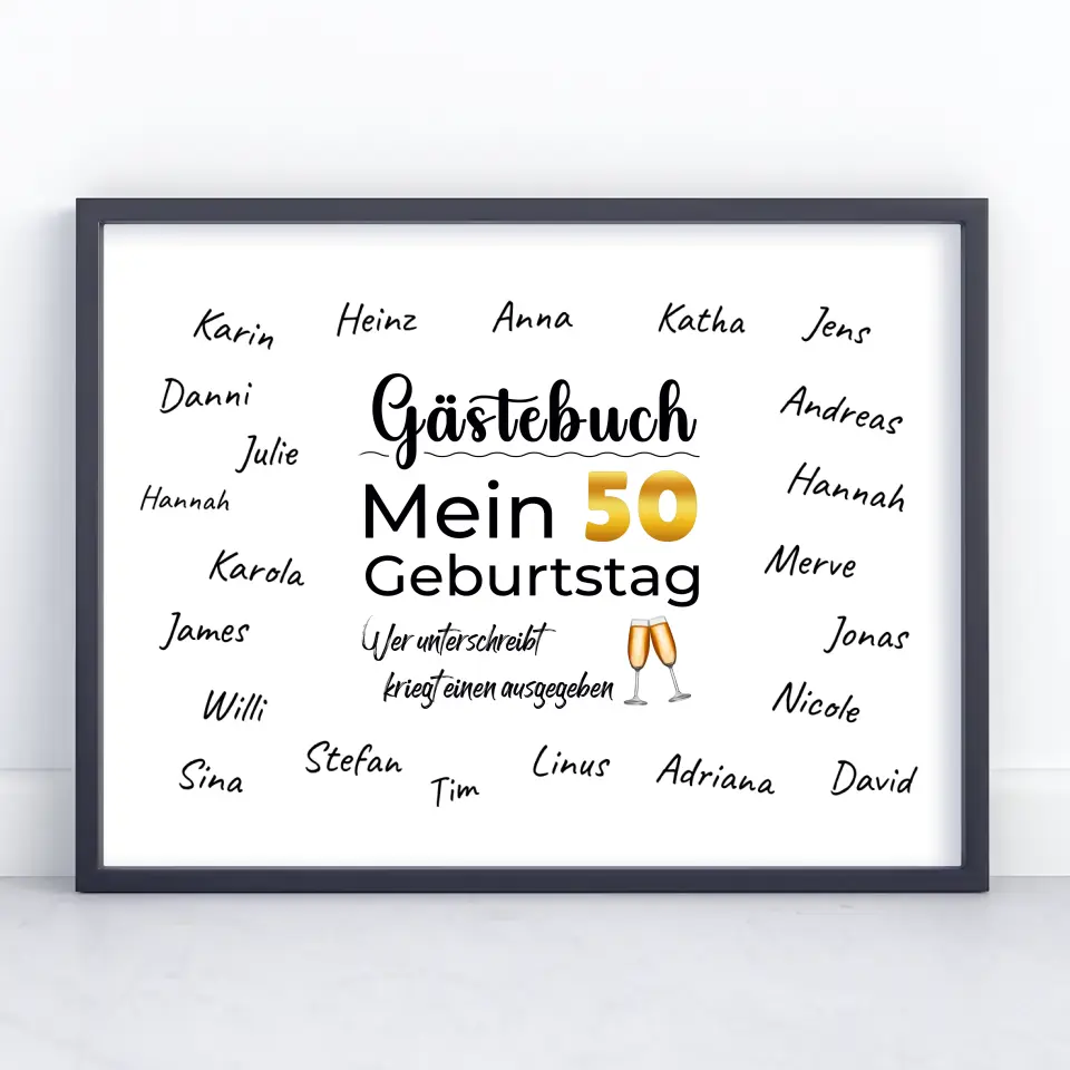 Poster als Geschenkidee Gästebuch 50 Geburtstag mit Unterschriften