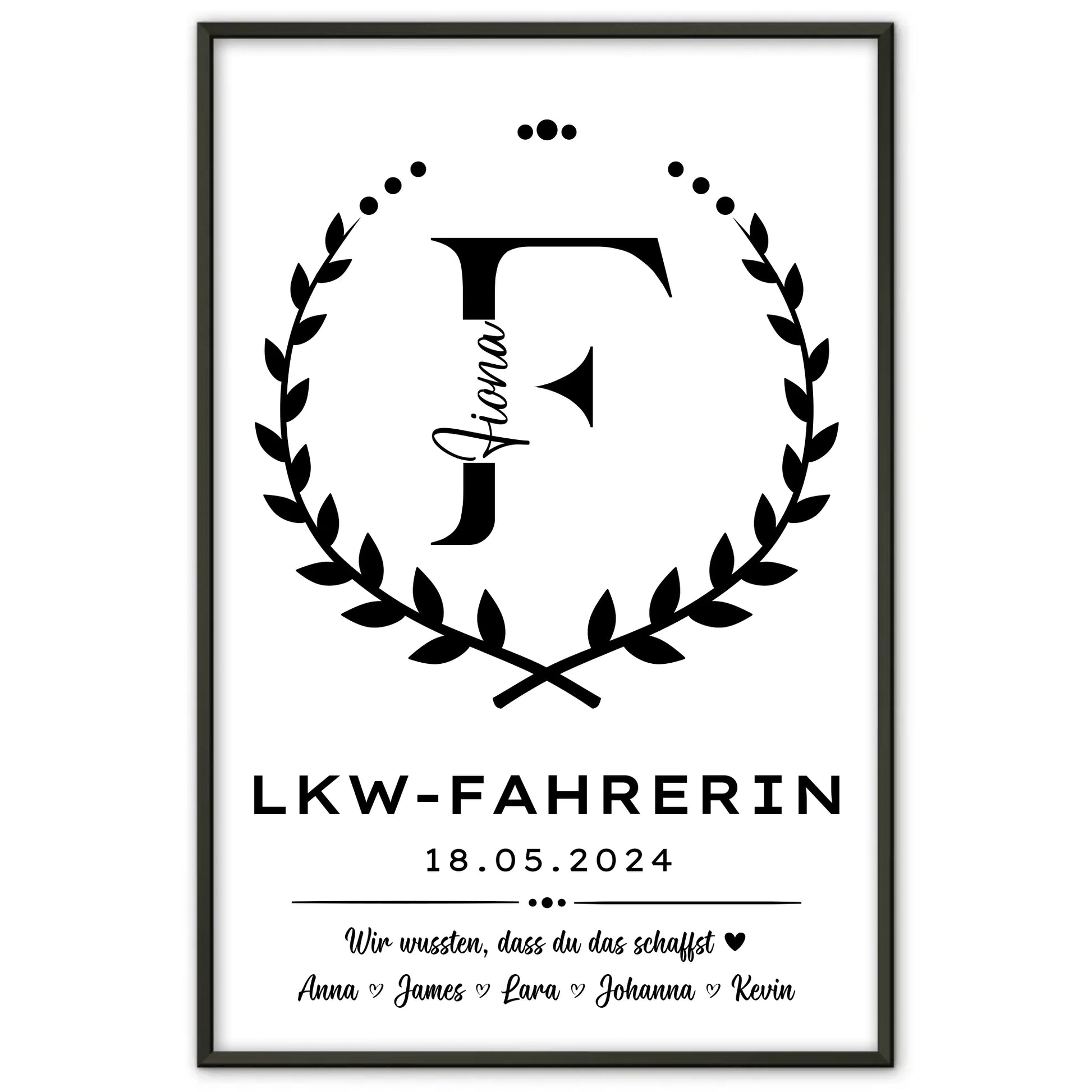 Sichere dir jetzt dein personalisiertes Poster Ausbildungsabschluss Geschenk LKW Fahrerin, um einem lieben Menschen eine große Freude zu bereiten und den Ausbildungsabschluss unvergesslich zu machen!