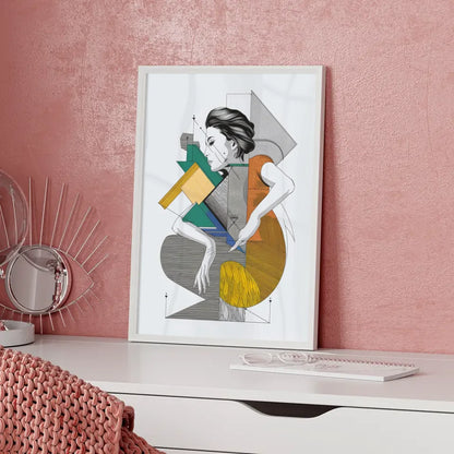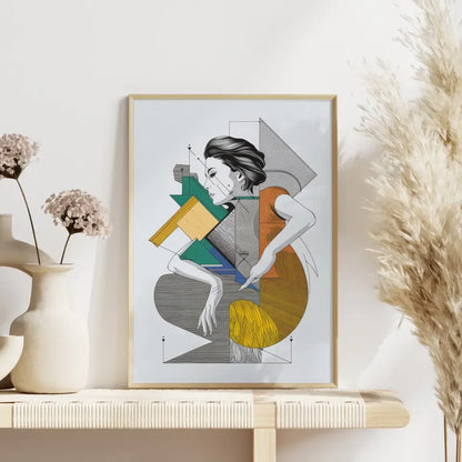 Poster Bauhaus Federillustration weibliche Figur mit geometrischen Formen