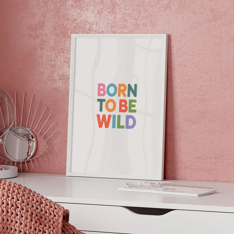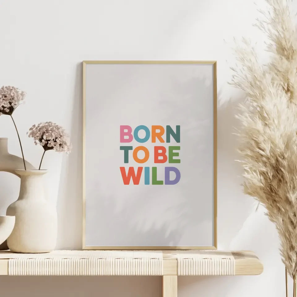 Bringen Sie Farbe und Freude in den Raum mit dem Poster Born to Be Wild in Pastellfarben. Ob ĂŒber dem Bett, im Spielbereich oder am Schreibtisch, dieses Kunstwerk schafft eine positive und inspirierende Umgebung fĂŒr Ihr Kind. Schaffen Sie eine liebevolle und kreative Ecke, die zum Spielen und Entdecken einlĂ€dt.