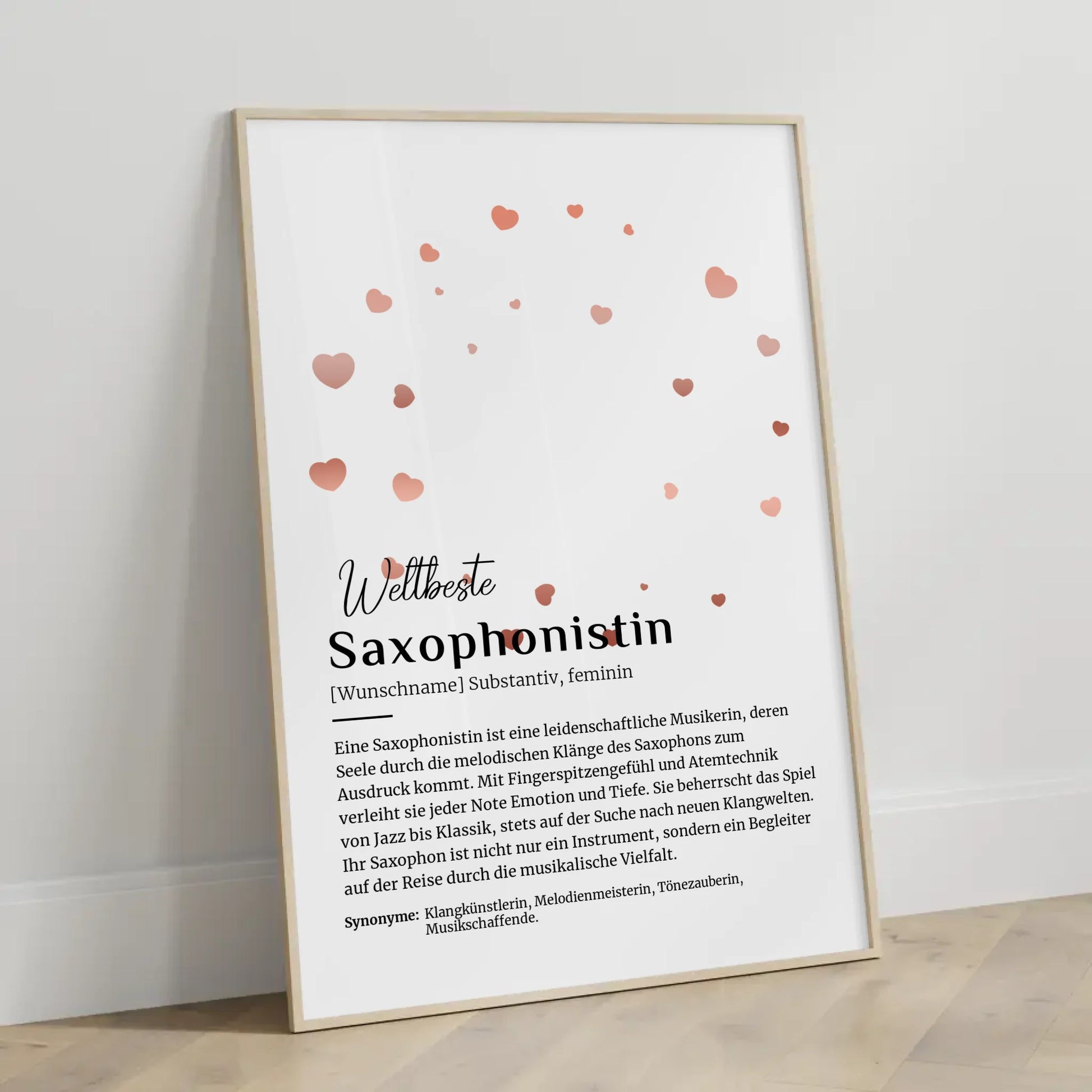 Poster Definition Saxophonistin Saxophon mit Namen Geschenk