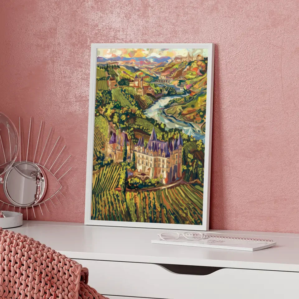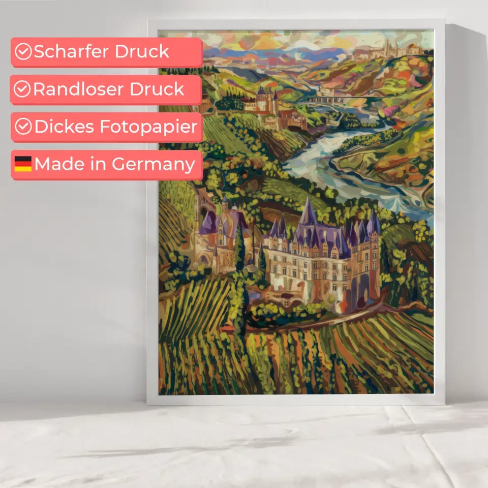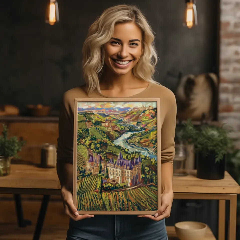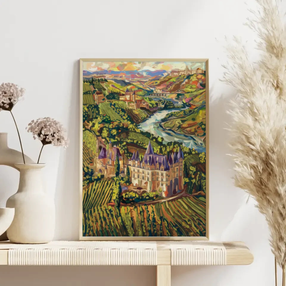 Dieses kunstvolle Poster ist nicht nur ein Blickfang, sondern auch eine perfekte ErgĂ€nzung zu Ihrer Wohnkultur. Ob im Wohnzimmer, Esszimmer oder BĂŒro â es bringt das Flair der französischen Weingegenden direkt zu Ihnen nach Hause. Verleihen Sie Ihren WĂ€nden mit diesem beeindruckenden Kunstwerk einen Hauch von Kunst und Eleganz!