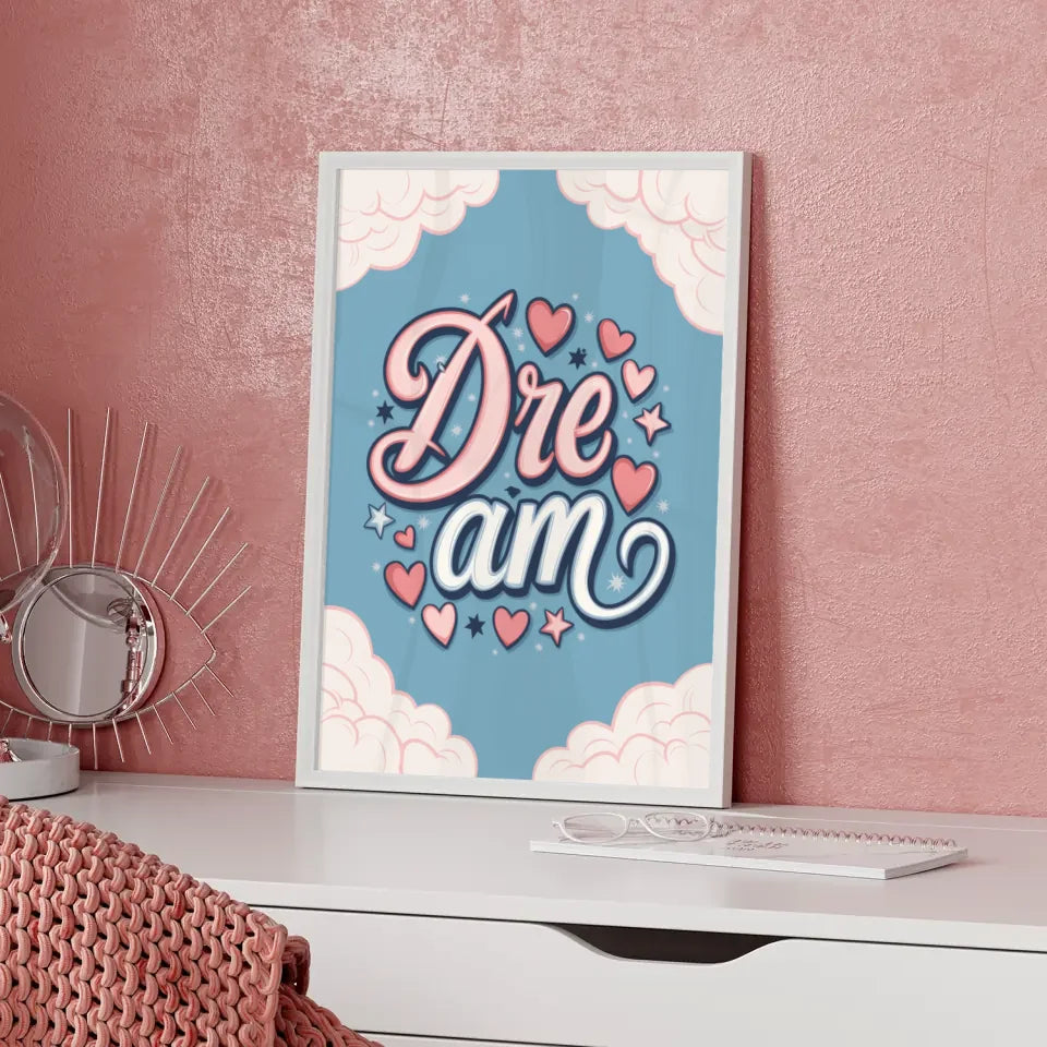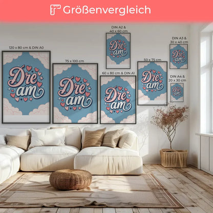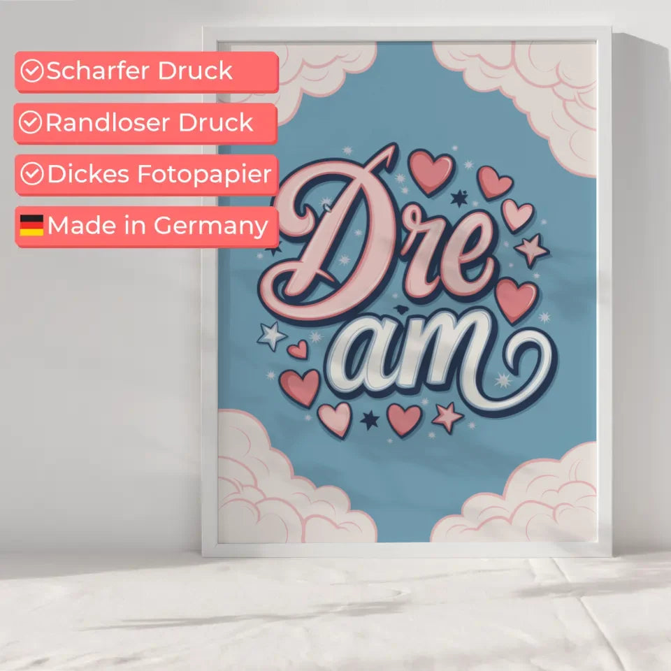 Bestellen Sie jetzt Ihr Poster Dream, um Ihrem Zuhause einen Hauch von Magie und Träumerei zu verleihen. Verleihen Sie Ihren Wänden Persönlichkeit – mit diesem einzigartigen Spruchbild wird jeder Raum zum Blickfang!