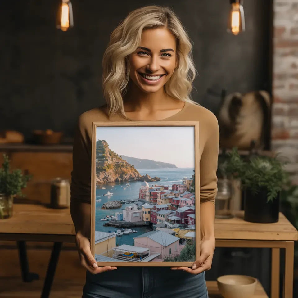 Gestalten Sie Ihr Zuhause mit unserem stilvollen Architektur-Poster und lassen Sie sich täglich von der traumhaften Kulisse dieser Küstenstadt inspirieren. Bestellen Sie jetzt und bringen Sie einen Hauch von Meer und Farbenpracht in Ihre Wände!