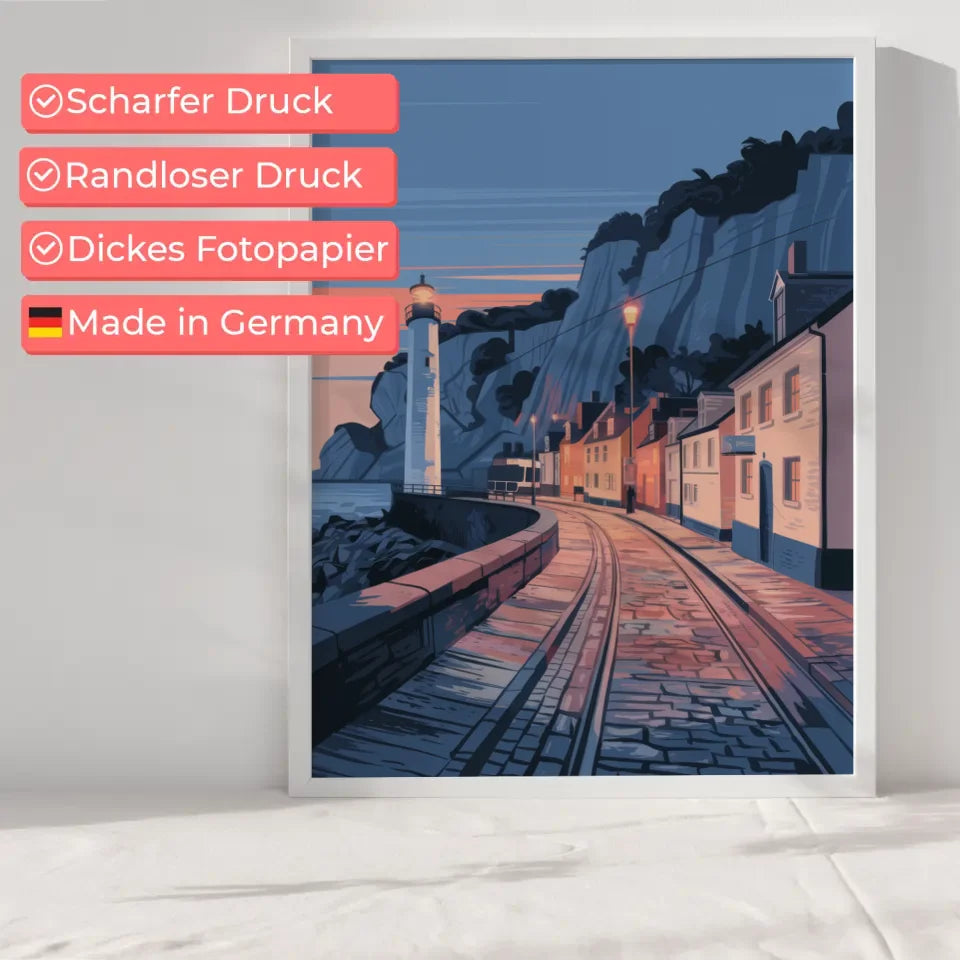 Gestalten Sie Ihr Zuhause stilvoll mit diesem wunderschönen Poster, das nicht nur ein Blickfang ist, sondern auch eine tiefere Verbindung zur Kunst herstellt. Egal, ob im Wohnzimmer, Büro oder Schlafzimmer, unser Poster einer ruhigen Küstenstadt bringt nicht nur Farbe, sondern auch eine gewisse Ruhe in jeden Raum. Setzen Sie Akzente mit diesem beeindruckenden Wandbild und genießen Sie die entspannende Ausstrahlung, die es bietet.