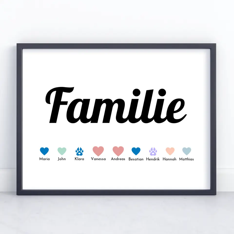 Poster Familie Eltern Kinder & Tiere Bis 20 Namen
