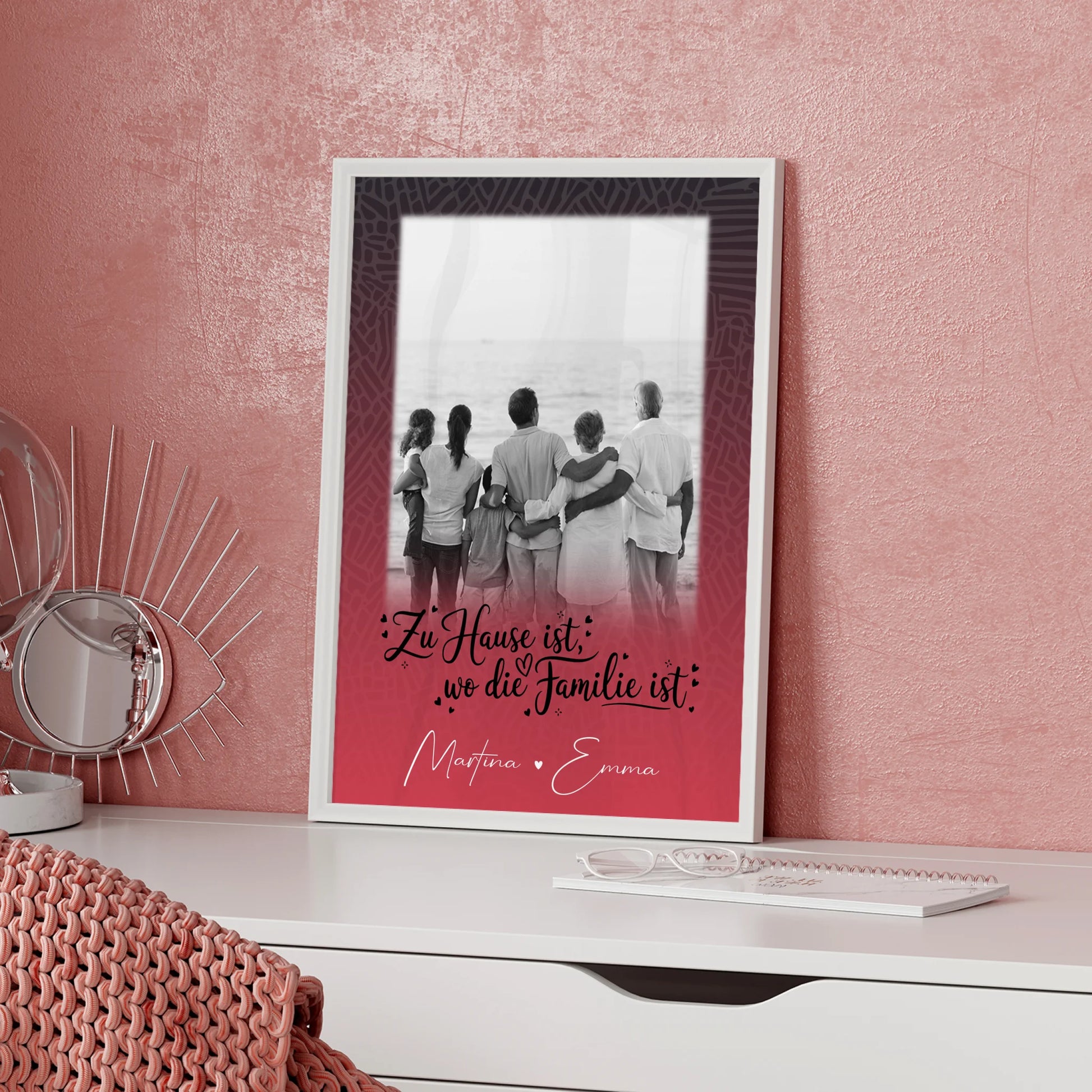 Poster Familie Mit Namen Zu Hause ist wo die Liebe wohnt mit 1 Foto – Dein persönliches Familien-Highlight
