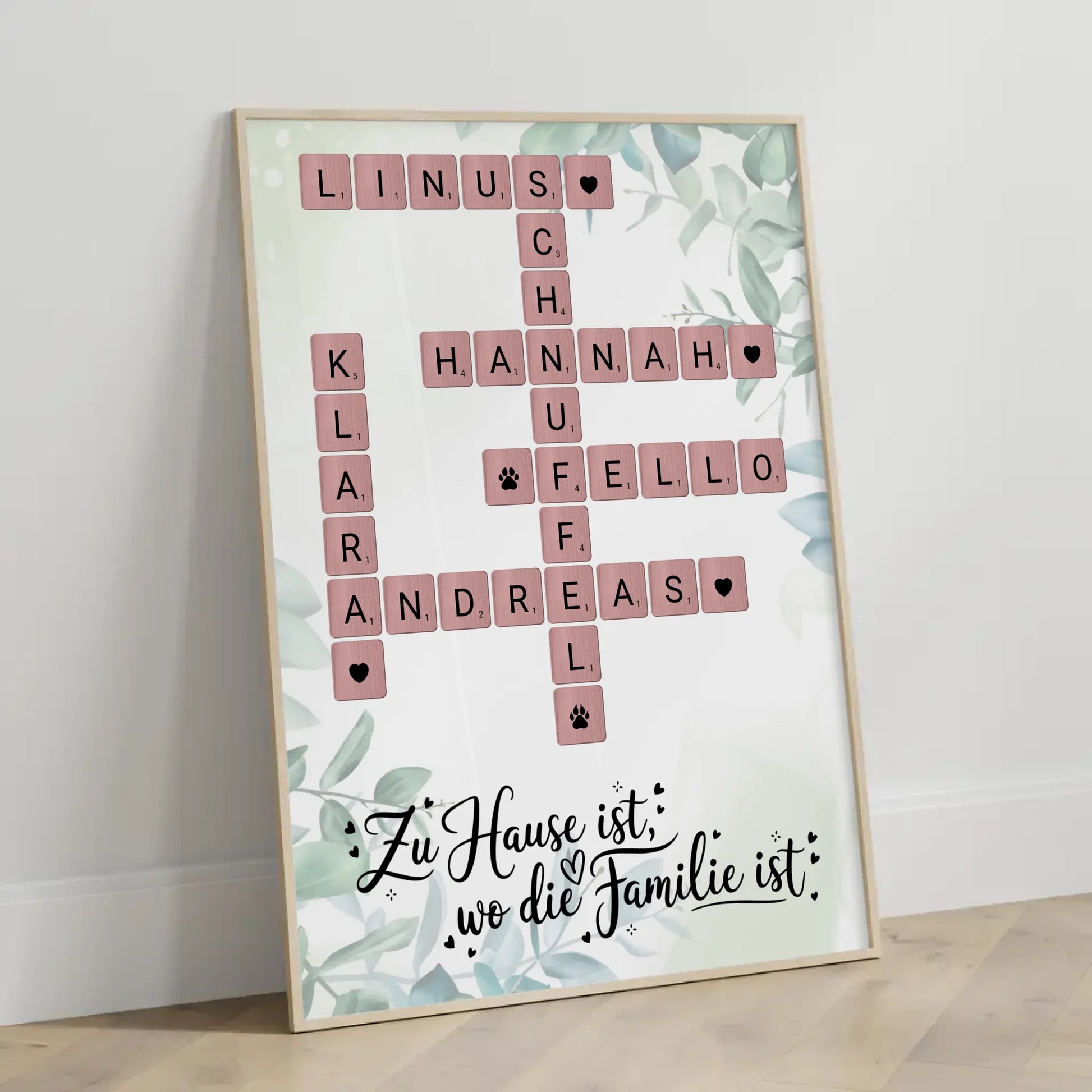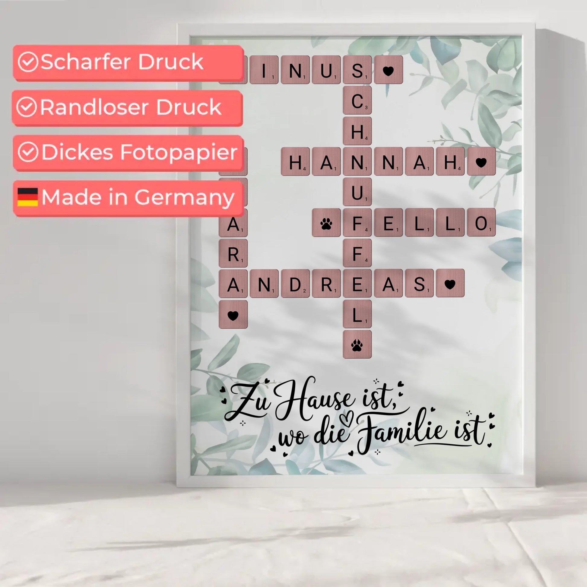 Poster Familie personalisiert – Zu Hause ist im Scrabble Design