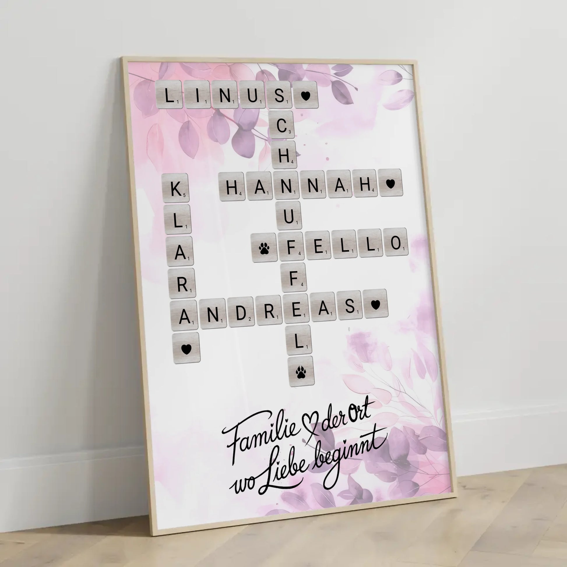 Das personalisiertes Poster Familie eignet sich für jeden Anlass – sei es zum Geburtstag, Hochzeitstag oder einfach nur als liebevolles Geschenk für deine Liebsten. Mit dem Kreuzworträtsel mit Namen bringst du einen spielerischen Akzent in dein Zuhause. Verleihe deinem Poster einen individuellen Touch und überrasche deine Familie mit einem Poster Familienbild personalisiert, das alle Mitglieder feiert.