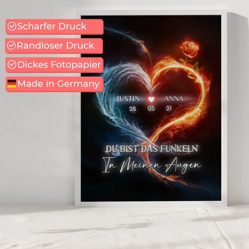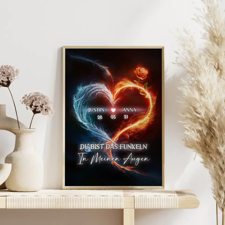 Unser Poster für Freundin Feuer & Wasser Herz Liebesposter personalisiert