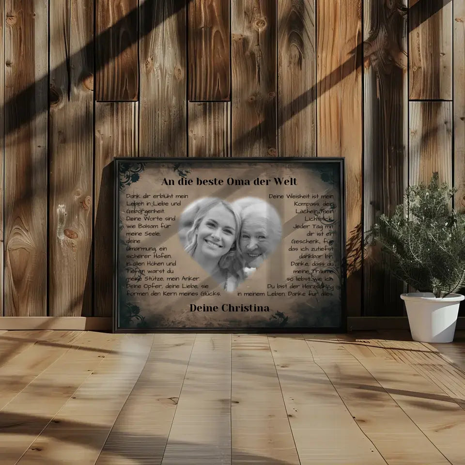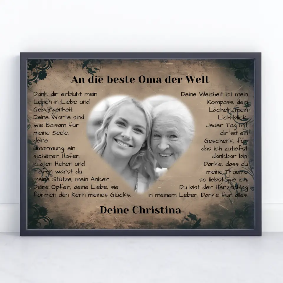 Du suchst ein tolles Geschenk? Dann ist Unser Poster für Oma Danksagung Vintage mit Foto ein wirklich einzigartiges personalisiertes Geschenk.