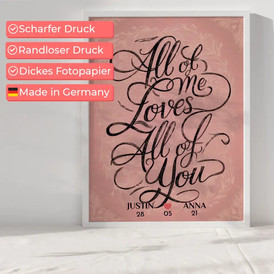 Unser Poster für Paare personalisiert All Of Me Loves All Of You
