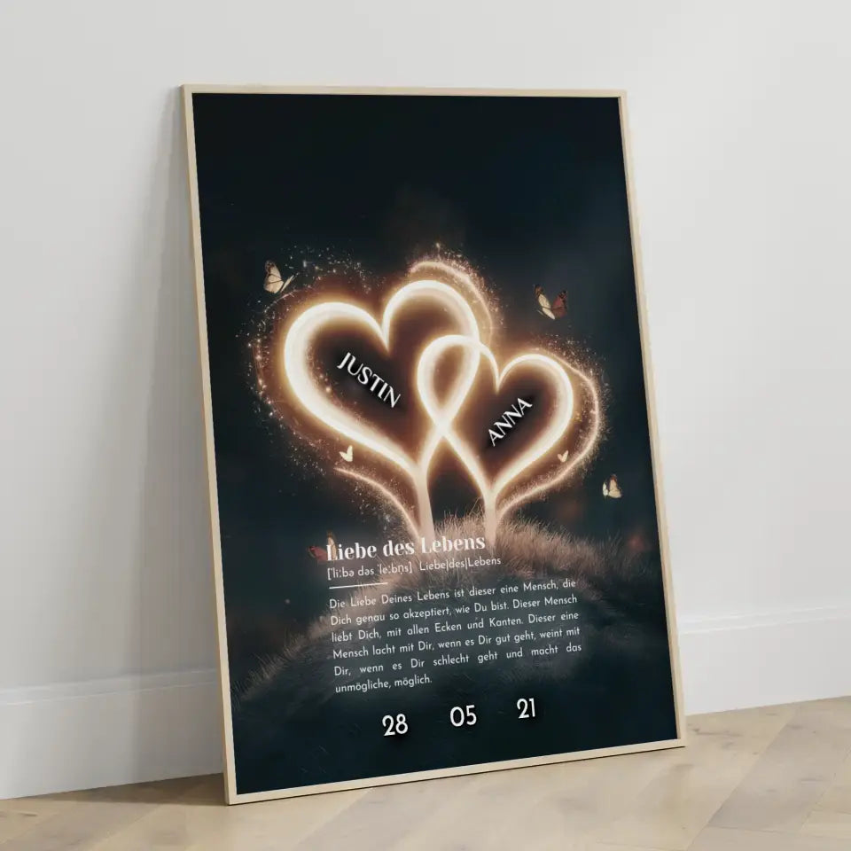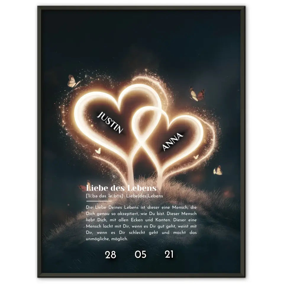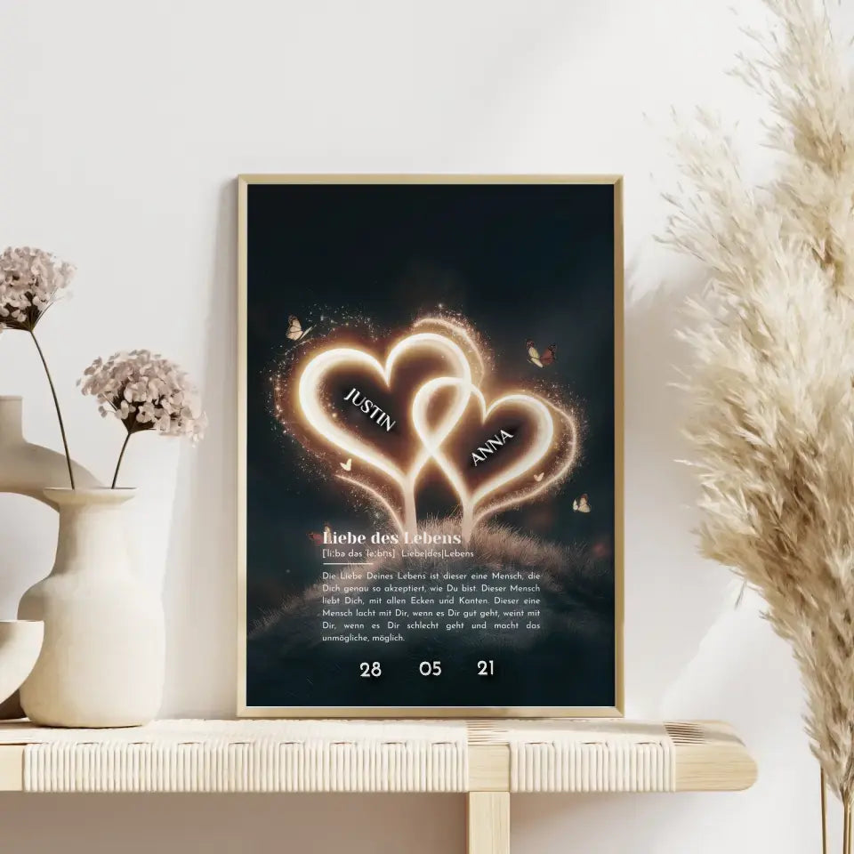 Unser Poster für Paare personalisiert mit Namen Glow Herzchen