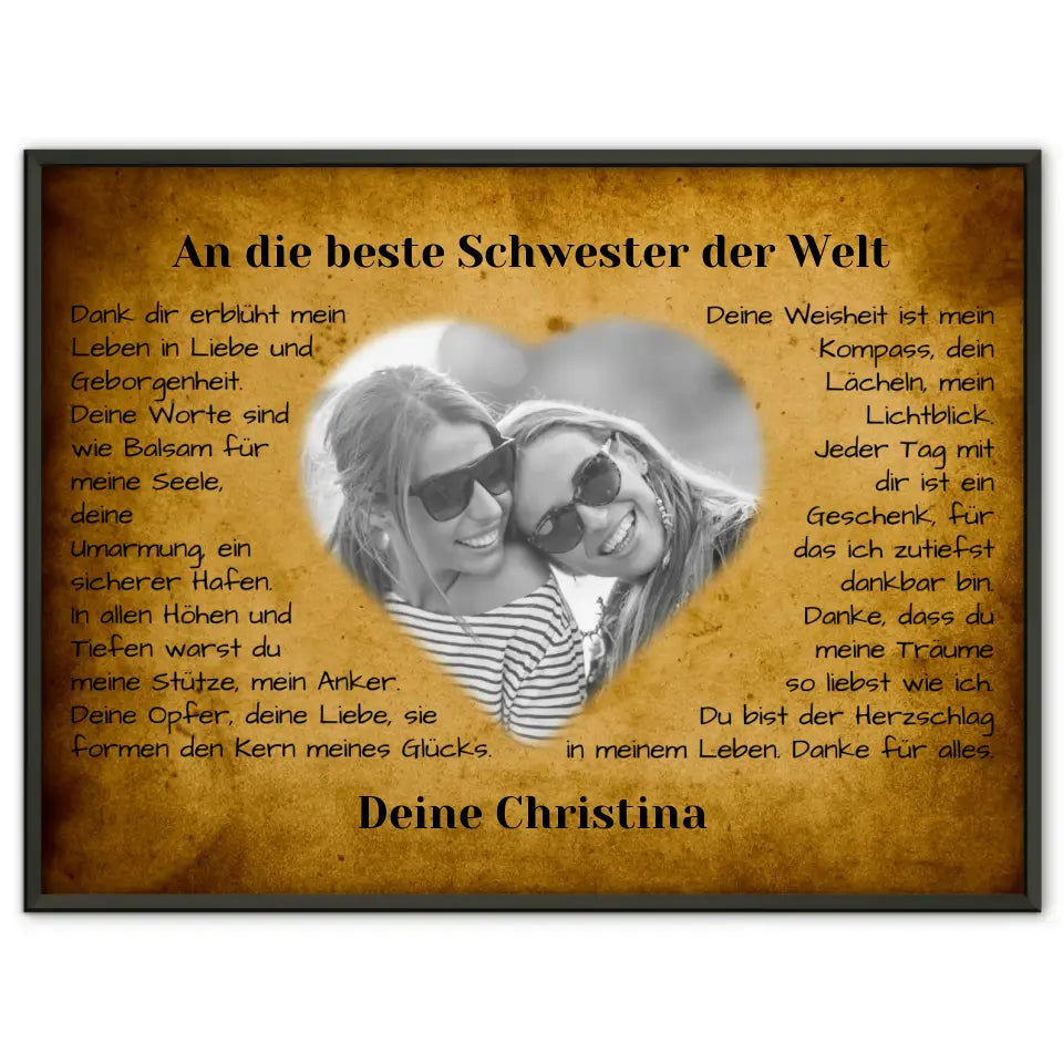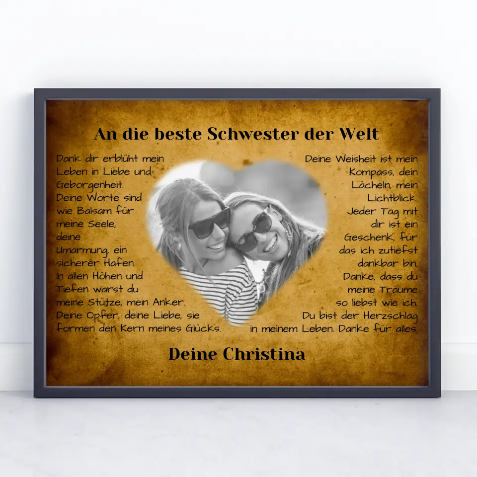 Du bist auf der Suche nach einem schönen tollen Geschenk? Dann ist Unser Poster für Schwester Danksagung Vintage mit Foto ein schönes und einzigartiges personalisiertes Geschenk.