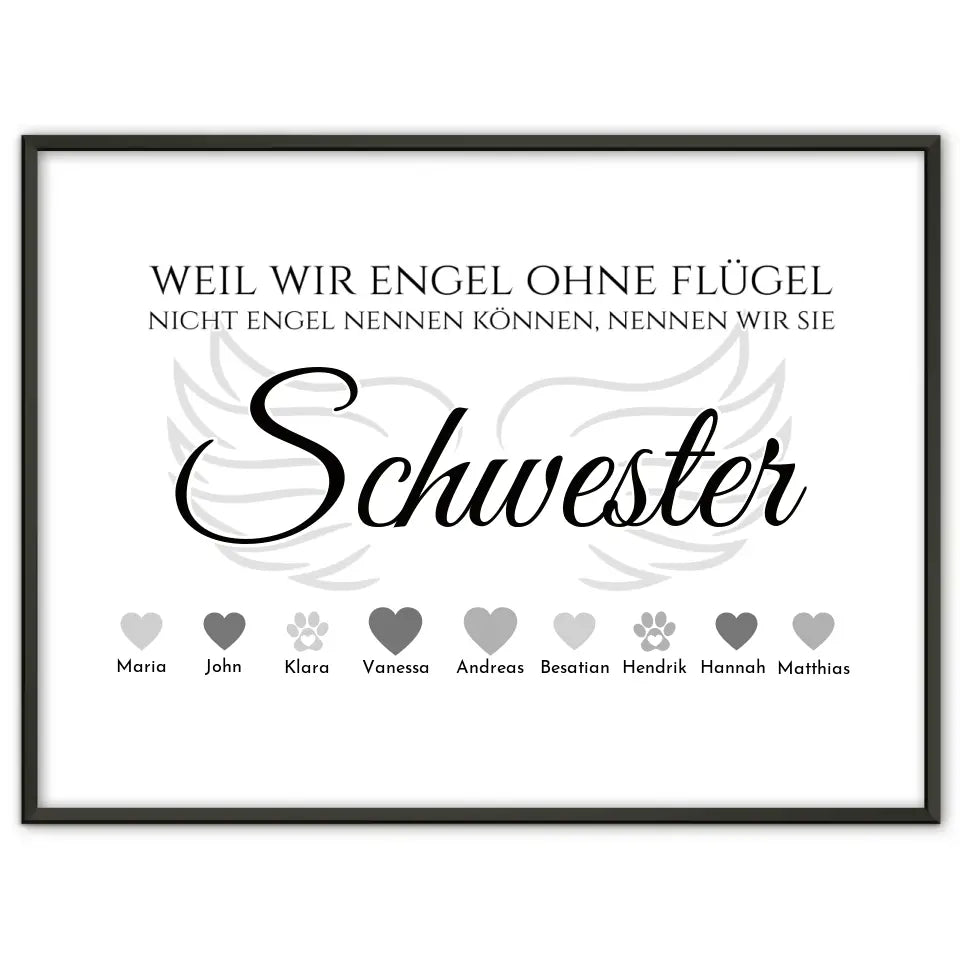 Unser Poster Geschenk Engel ohne Flügel Schwester Personalisiert