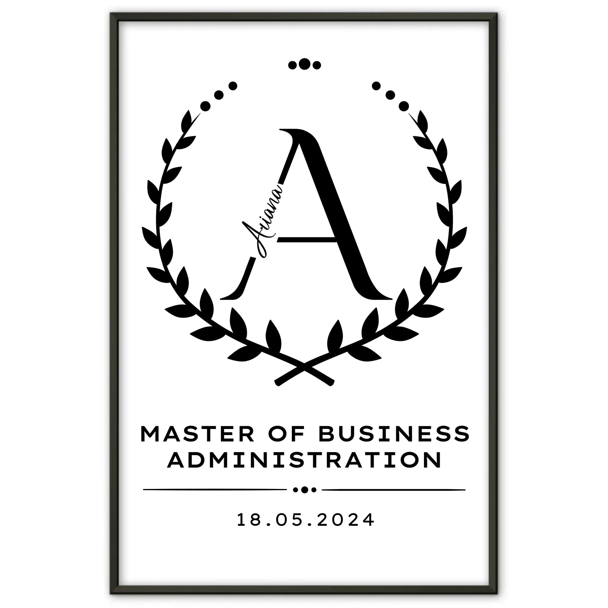Du suchst ein einzigartiges und persönliches Geschenk zum Masterabschluss? Unser Poster Geschenk Masterabschluss Master Of Business Administration Masterand ist genau das Richtige für dich! Dieses hochwertige Poster kannst du individuell gestalten, indem du den Initial Buchstaben, das Datum und einen Wunschtext deiner Wahl hinzufügst. So wird dein Geschenk zum Masterabschluss zu einem ganz besonderen Andenken für jeden Masterand.