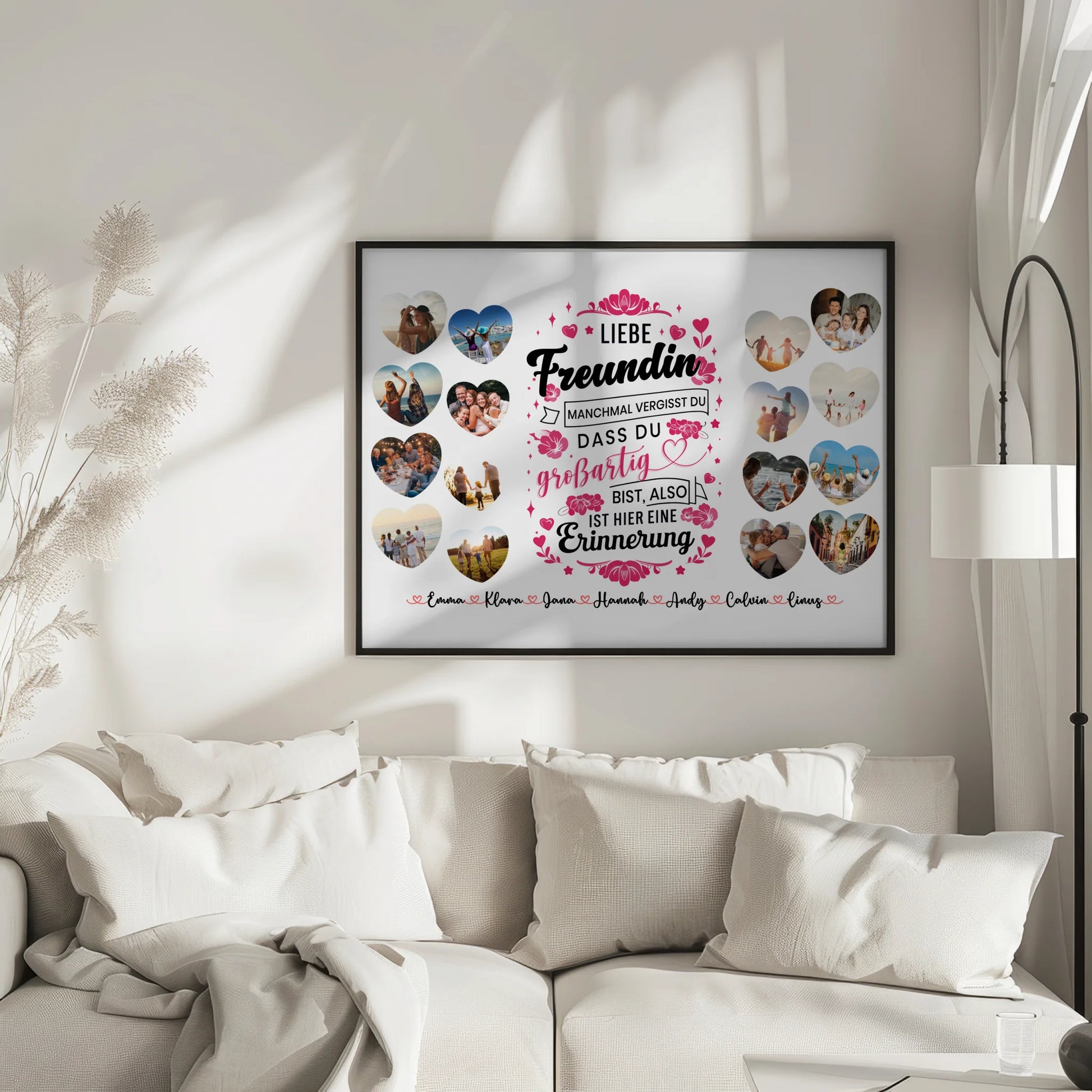 Du kannst bei diesem schönen Design 16 Fotos & 20 Namen ganz individuell personalisieren.