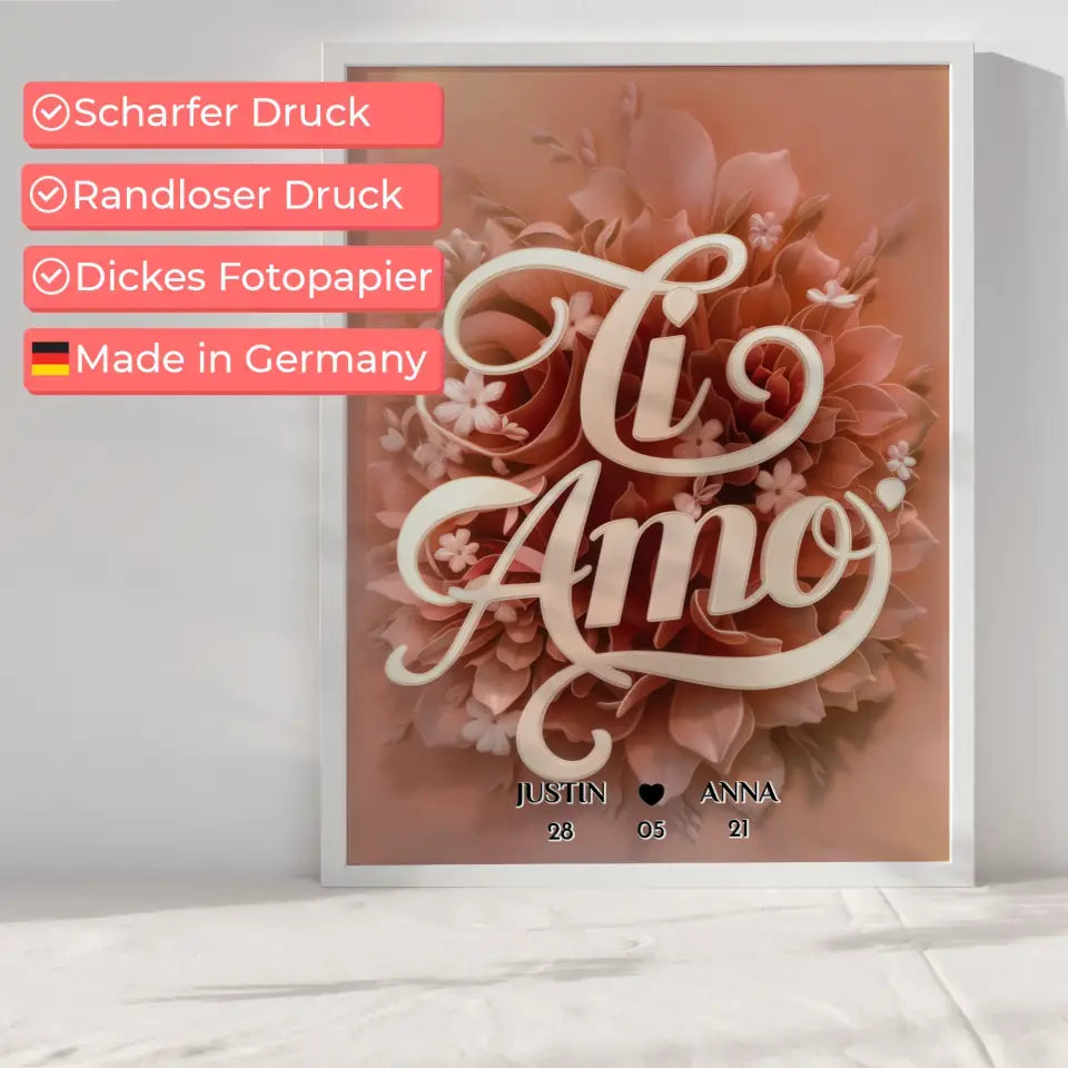 Poster Geschenk personalisiert Ti Amo für Paare
