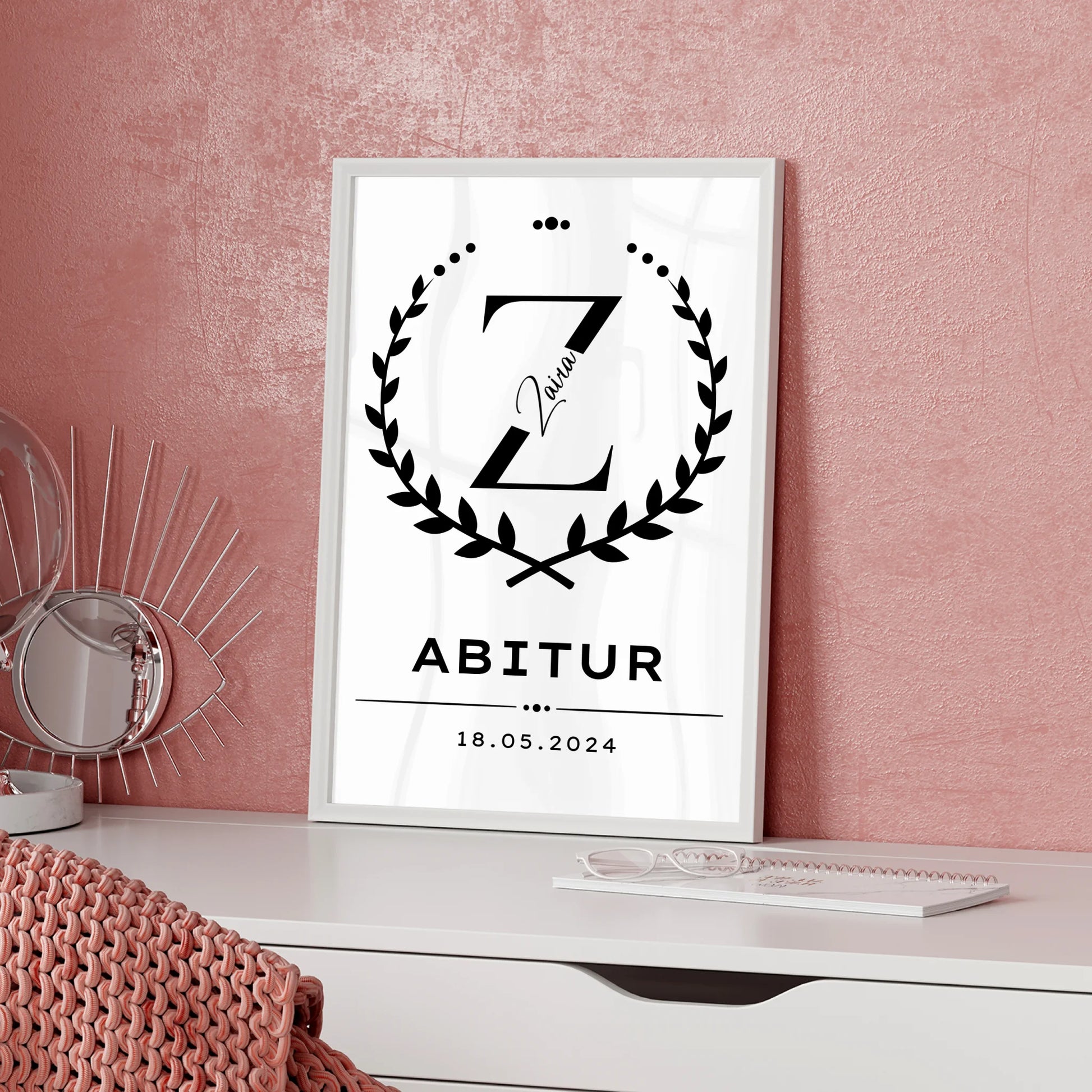 Du suchst ein einzigartiges und persönliches Poster als Geschenk zum Abitur? Unser Poster Geschenk zum Abitur Abschluss fuer Abiturient ist genau das Richtige für dich! Dieses individuelle Poster kannst du ganz einfach mit dem Initial Buchstaben, dem Datum des Abschlusses und deinem Wunschtext personalisieren. So wird das Geschenk zum Abitur zu einem unvergesslichen Andenken für jeden Abiturienten. Ob als Dekoration fürs Zimmer oder als Erinnerung an einen wichtigen Lebensabschnitt – dieses Poster ist das ideale Präsent für den erfolgreichen Abschluss. Überrasche deinen Lieblings-Abiturienten mit einem besonderen Poster, das nicht nur stilvoll aussieht, sondern auch eine persönliche Botschaft trägt. Bestelle jetzt dein personalisiertes Poster Geschenk zum Abitur und mache den Abschluss zu einem ganz besonderen Moment!