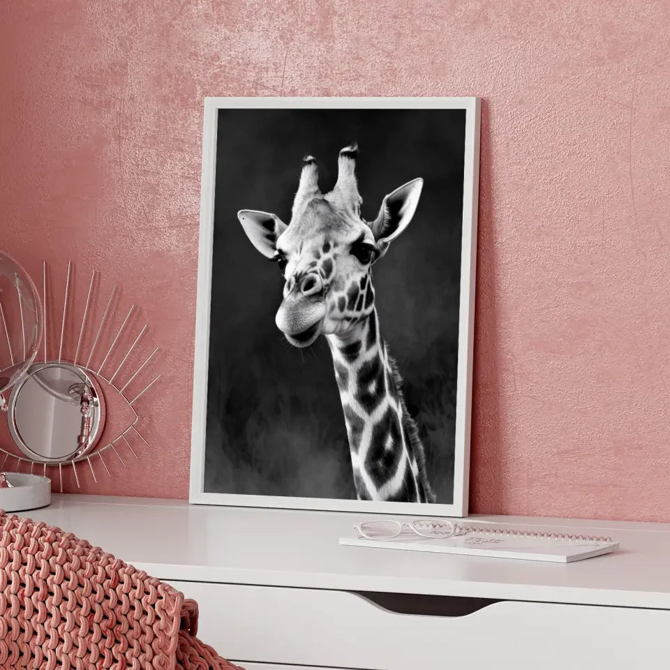 Gestalten Sie Ihre Wände mit diesem einzigartigen Poster und lassen Sie die faszinierenden Details der Giraffe in jedem Raum zur Geltung kommen. Kaufen Sie unser Poster Giraffe Schwarz-Weiß Foto noch heute und genießen Sie die Schönheit und Eleganz dieser majestätischen Kreatur!