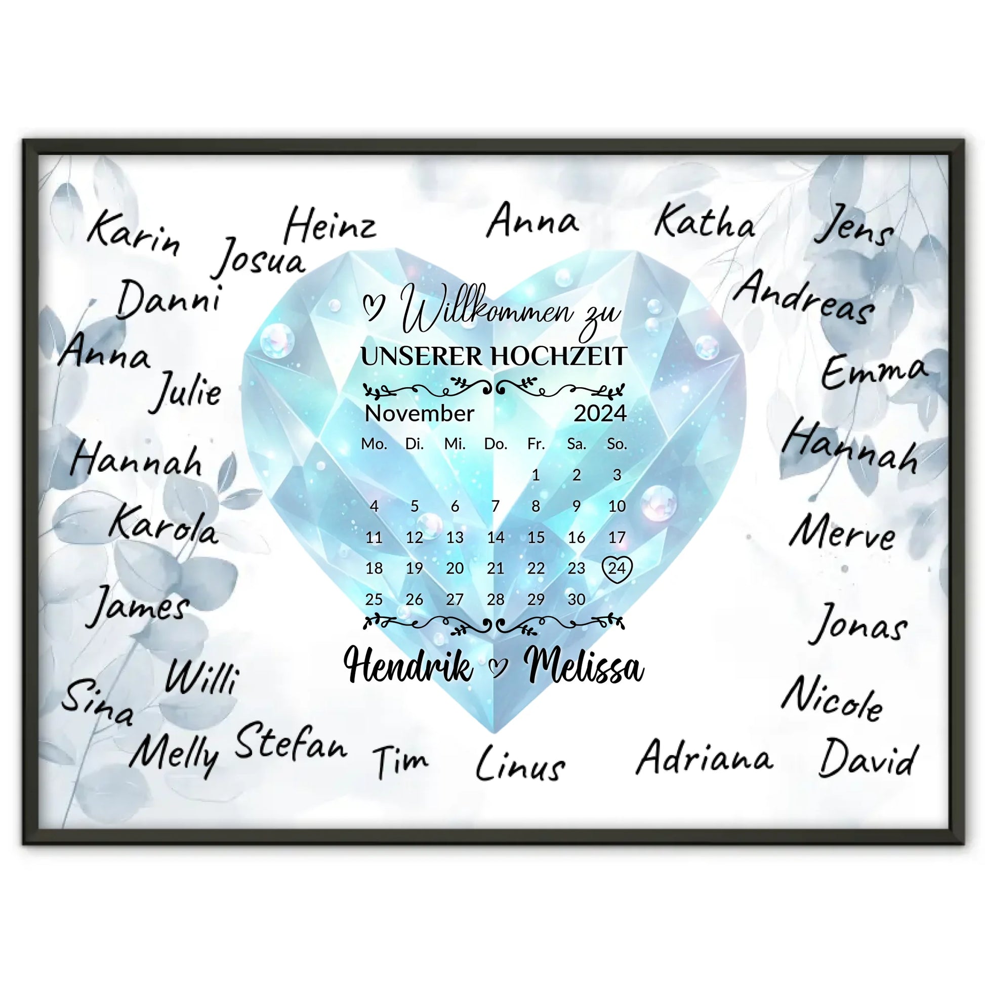 Poster Hochzeit Herzlich Willkommen Blue Diamond für Unterschriften