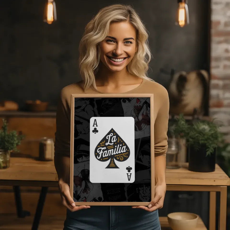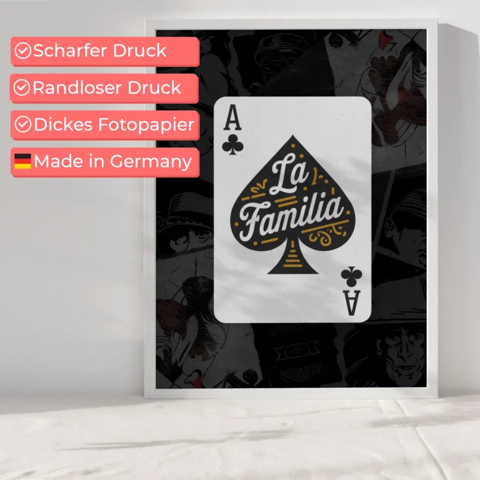 Poster im Chicano Stil La Familia auf weißer Pokerkarte kaufen