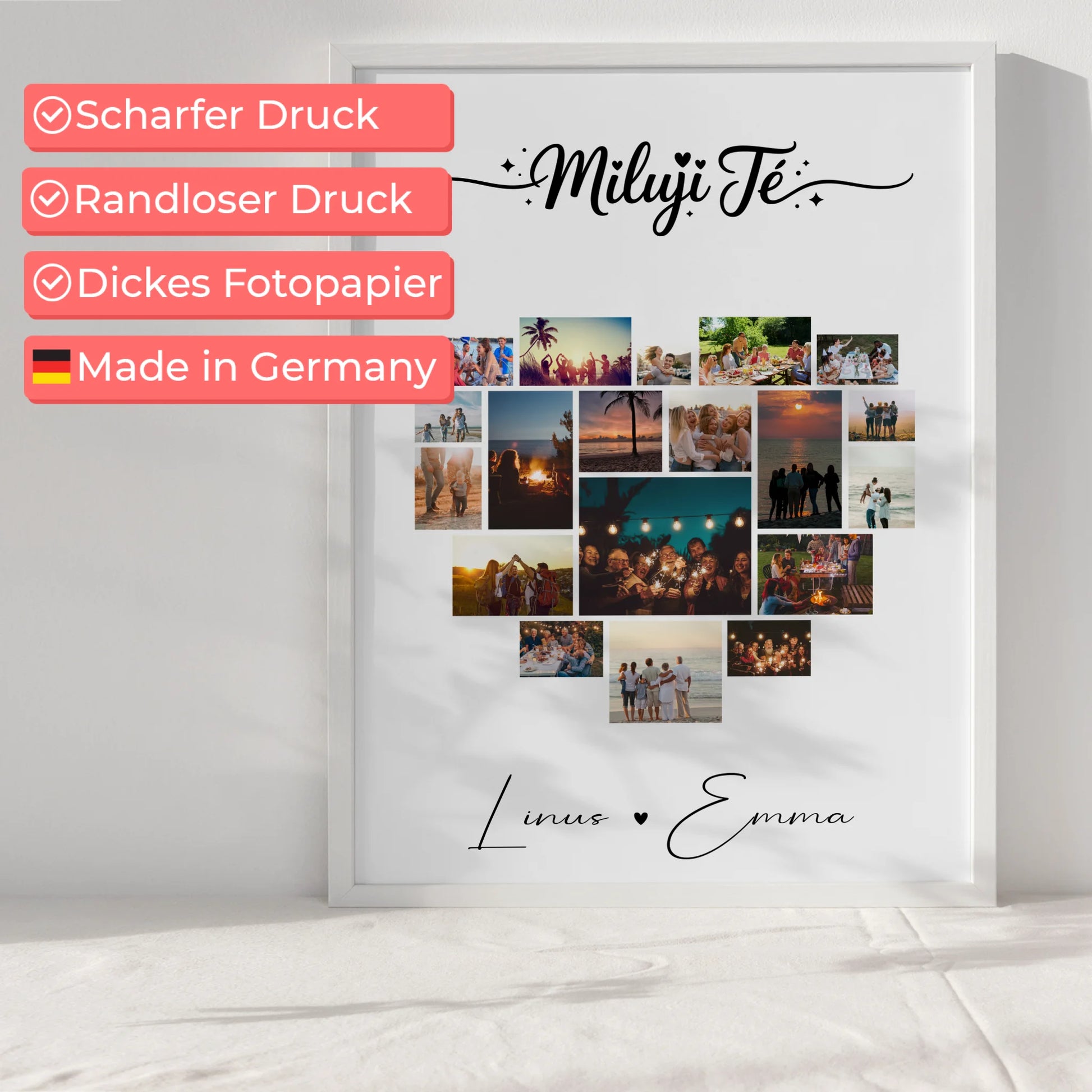 Poster Liebe Fotocollage mit 19 Herz Fotos Miluji tě – Dein persönliches Geschenk der Liebe