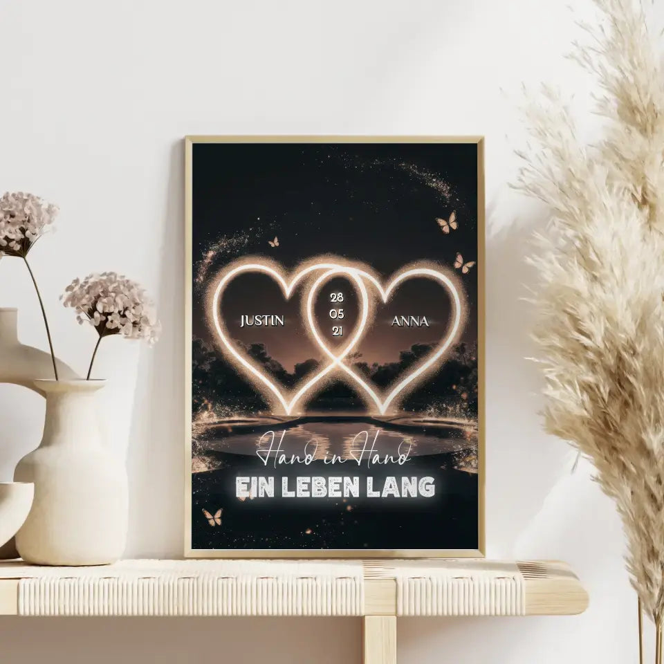 Poster Liebe Personalisiert Herzenlicht mit Namen Paare