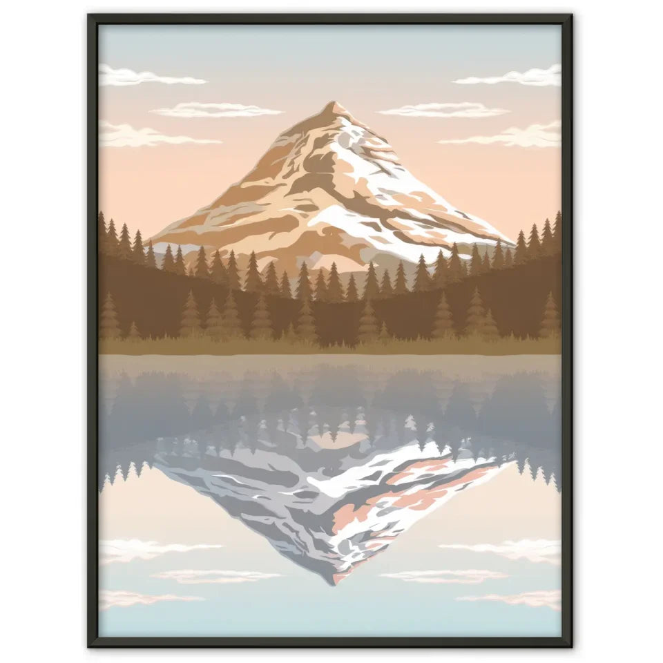 Bringen Sie die Schönheit der Natur in Ihr Zuhause mit unserem einzigartigen Poster majestÀtischer Berglandschaft mit ruhigem Wasser und Wald. Dieses atemberaubende Wandbild im Boho Stil zeigt eine friedliche Landschaft, dominiert von einem majestÀtischen, schneebedeckten Berggipfel. Die harmonische Komposition wird durch einen dichten Wald aus NadelbÀumen ergÀnzt, der die idyllische Szenerie umrahmt.