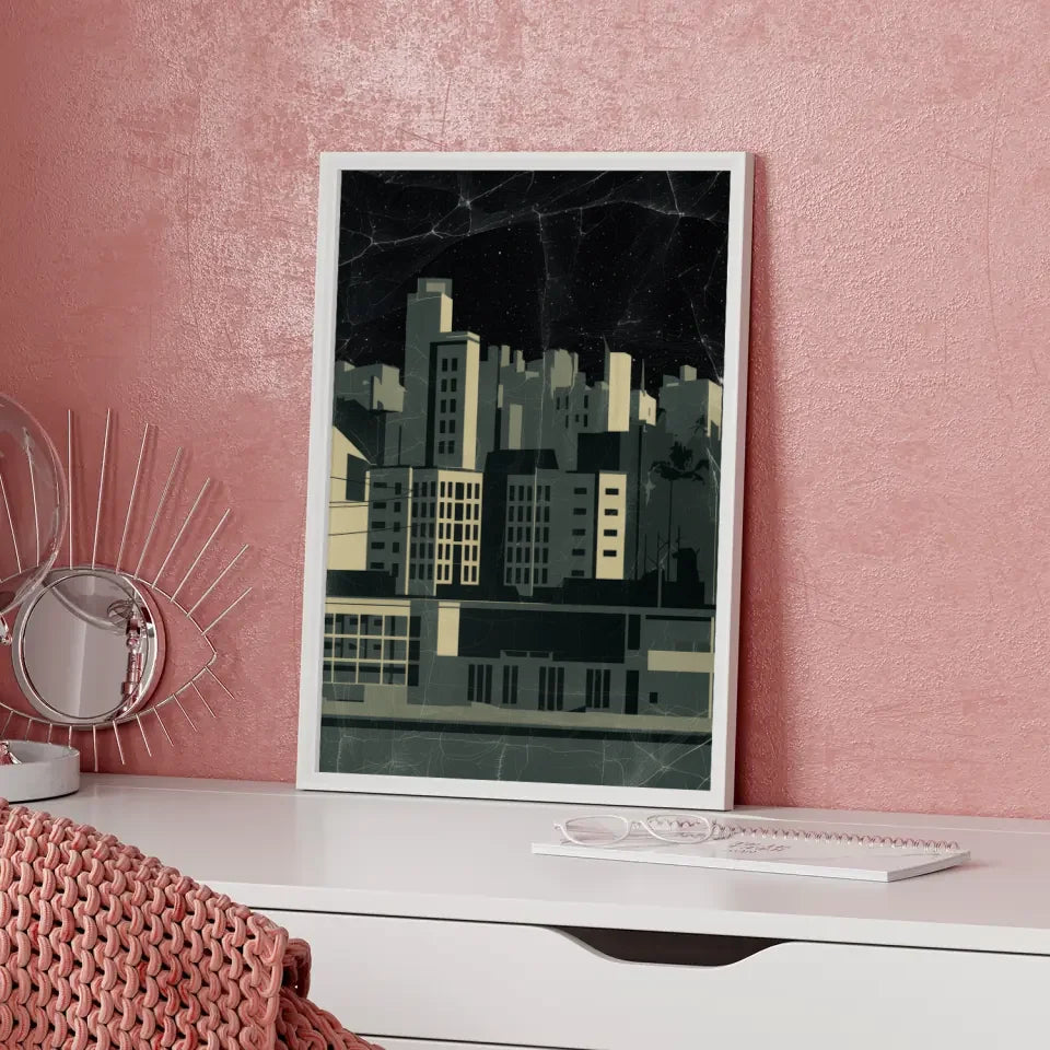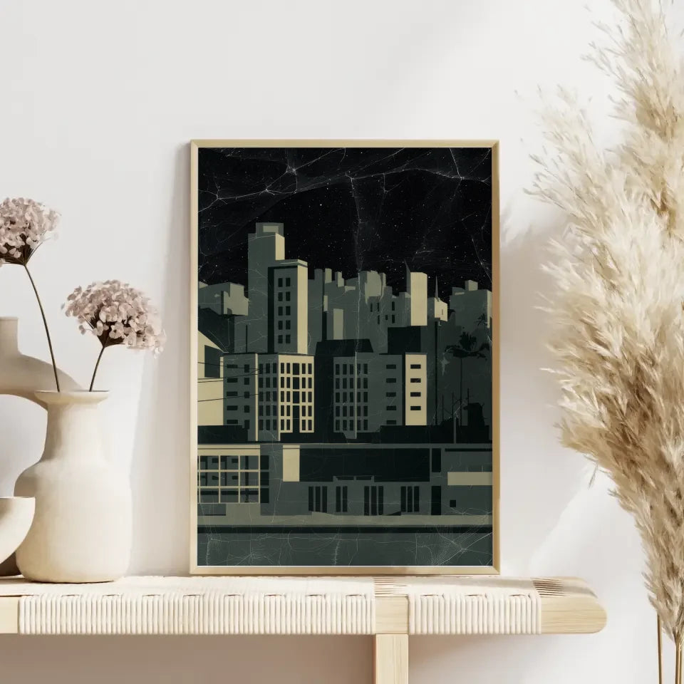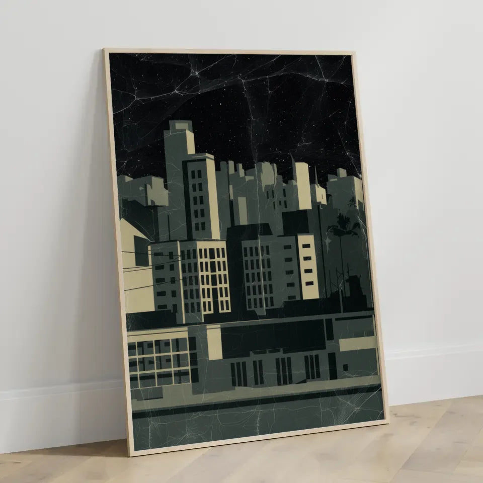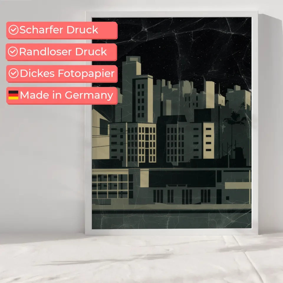 Poster minimale Stadtansicht nachts brutalistisch vintage