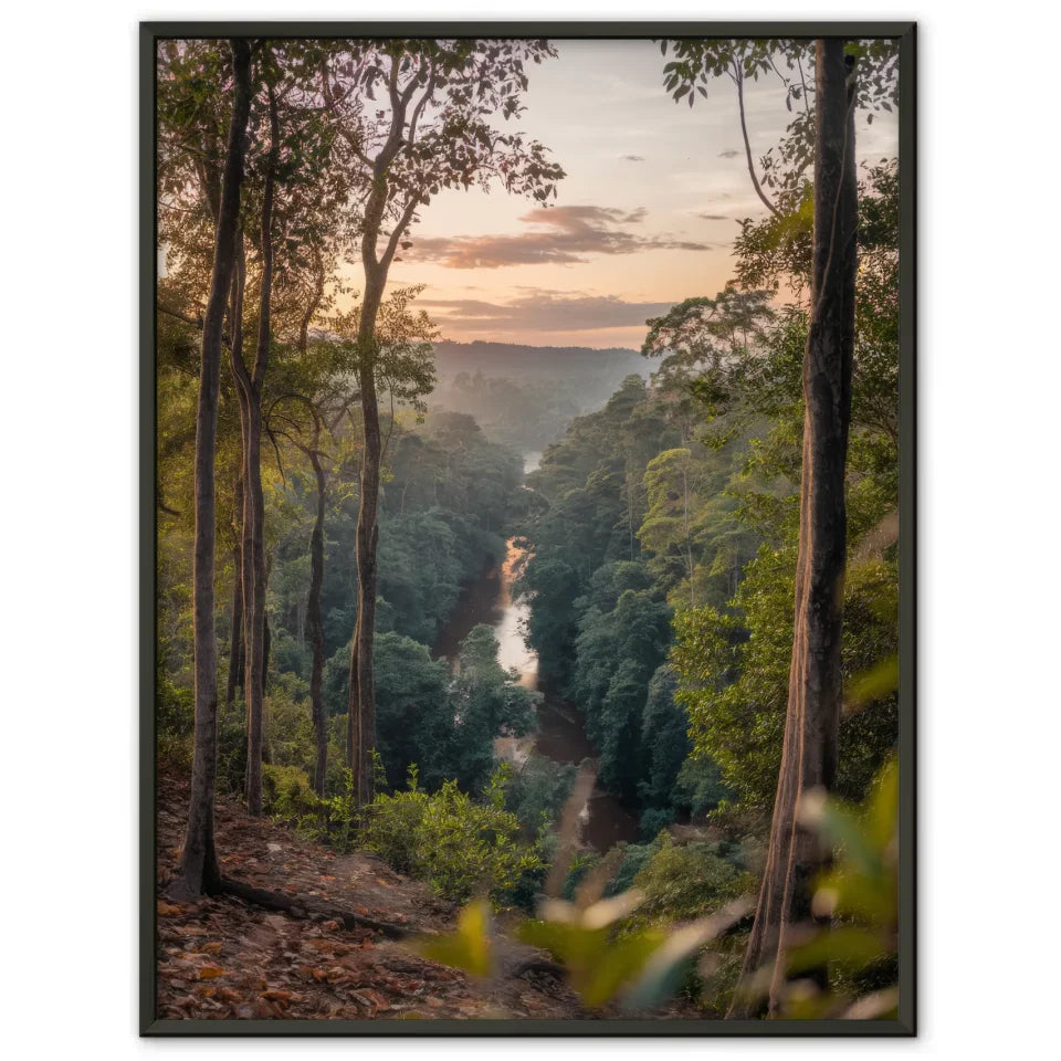 Gestalten Sie Ihr Zuhause mit unserem atemberaubenden Poster Amazonas-Regenwald Panoramafoto zur Golden Hour. Dieses beeindruckende Wandbild fÀngt die majestÀtische Schönheit des Amazonas-Regenwaldes in Brasilien ein und erweckt jeden Raum mit der warmen, goldenen Lichtstimmung der AbenddÀmmerung zum Leben.