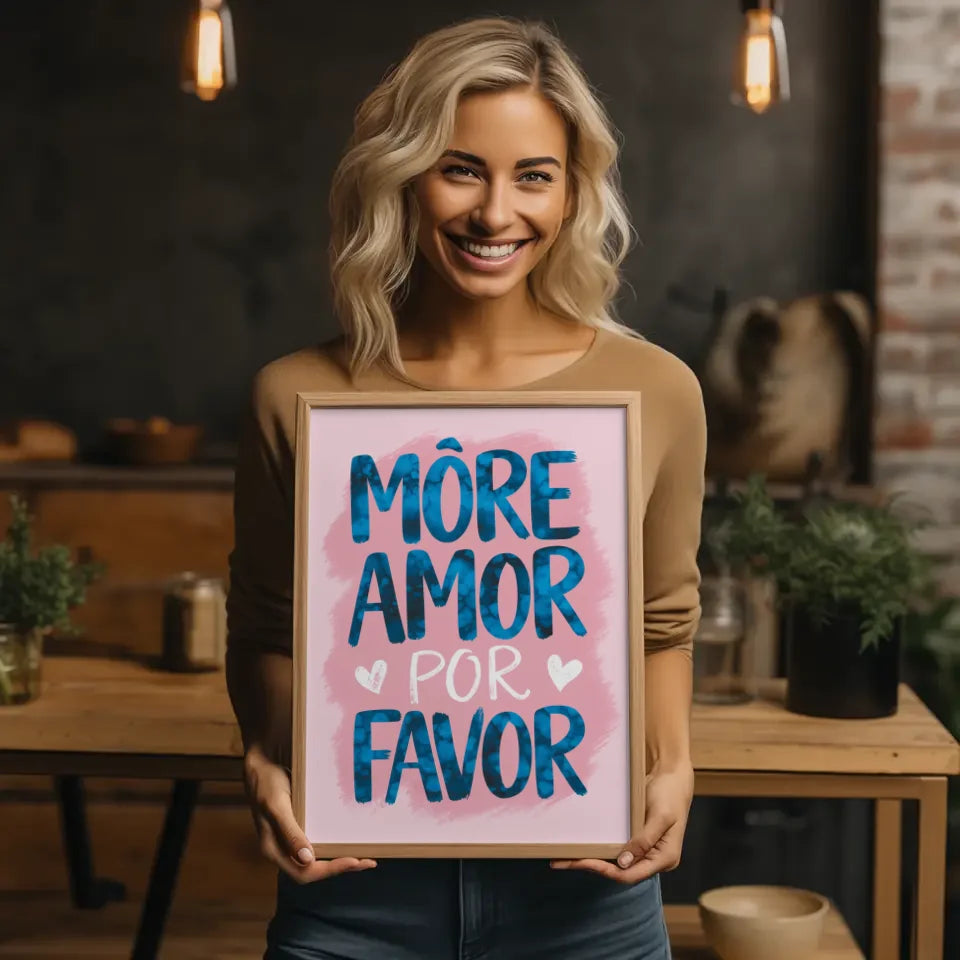 Entdecken Sie die Vielfalt unserer Poster und finden Sie das passende Kunstwerk, das Ihre Persönlichkeit widerspiegelt. Mit dem Poster mit Aquarell Illustration MORE AMOR POR FAVOR in Rosa setzen Sie ein Zeichen für mehr Liebe und Freude in Ihrem Alltag.