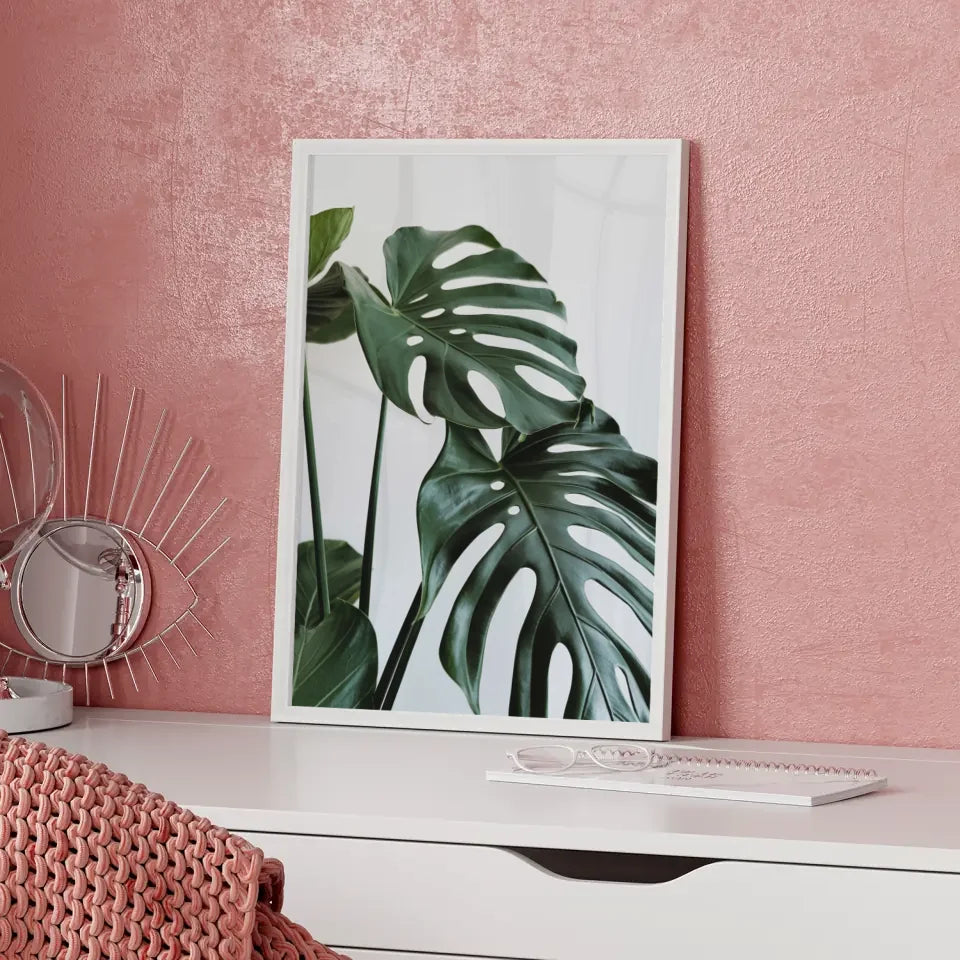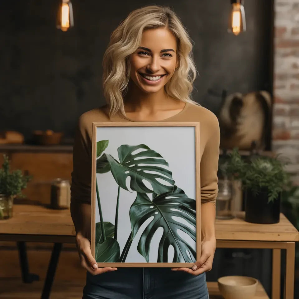 Verleihen Sie Ihrem Wohnraum einen frischen, natürlichen Touch mit unserem einzigartigen Poster mit grünen Blättern und Löchern für natürliche Raumgestaltung. Dieses bezaubernde Botanik-Design zeigt eine beeindruckende Nahaufnahme großer, üppig grüner Blätter, die durch markante Löcher in ihrer Struktur bestechen. Jeder Blick auf dieses Poster wird Sie an die Schönheit der Natur erinnern und Ihnen ein Gefühl von Ruhe und Gelassenheit vermitteln.