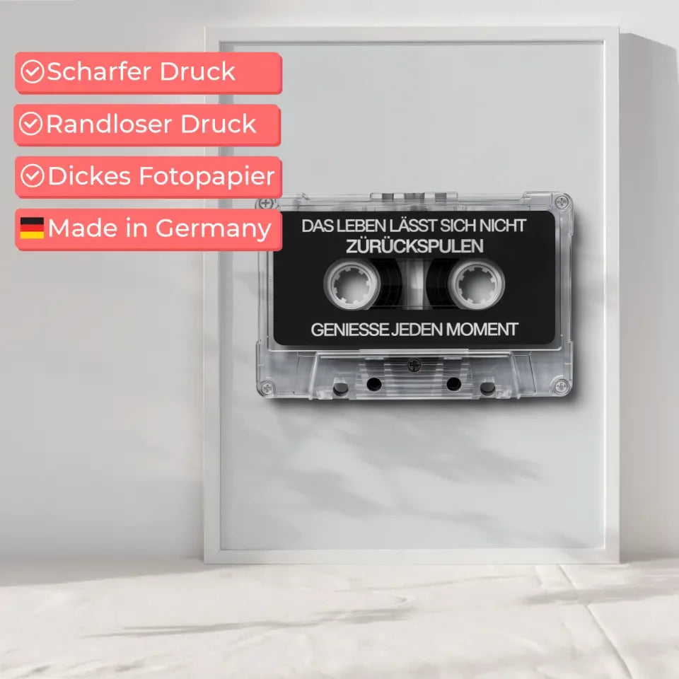 Poster mit Kassette Das Leben lässt sich nicht zurückspulen
