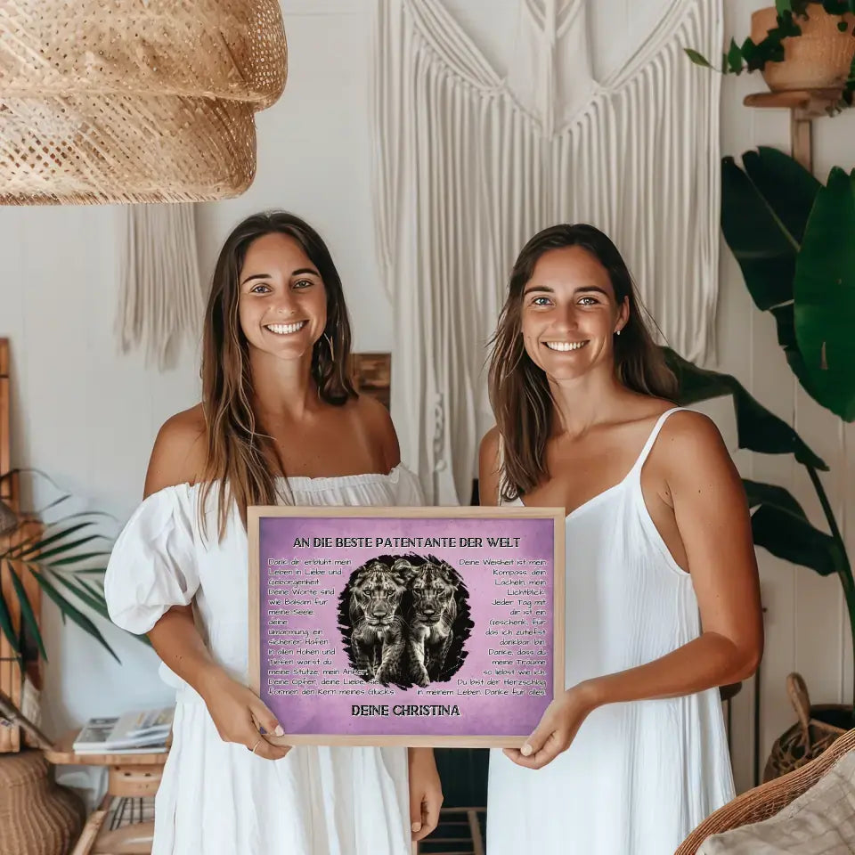 Du suchst ein tolles Geschenk? Dann ist Unser Poster mit Löwen fĂŒr Patentante DANKE mit Löwen Bild ein richtig schönes personalisiertes Geschenk.