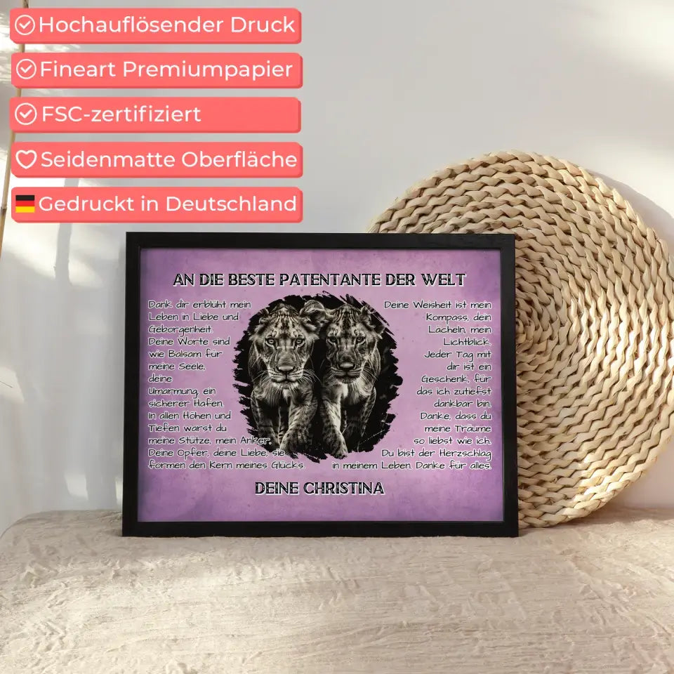 Poster mit Löwen fĂŒr Patentante DANKE mit Löwen Bild
