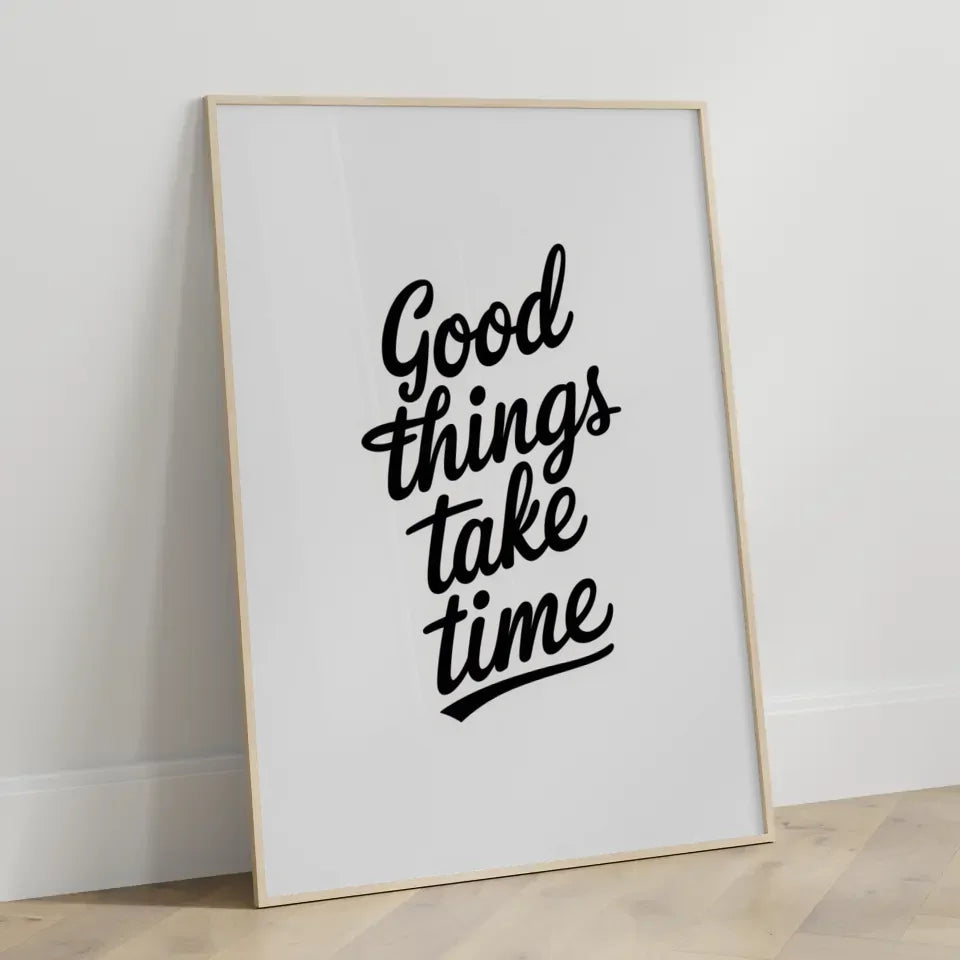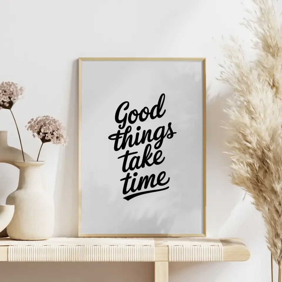 Minimalistisches Poster Gute Dinge brauchen Zeit in elegantem Design