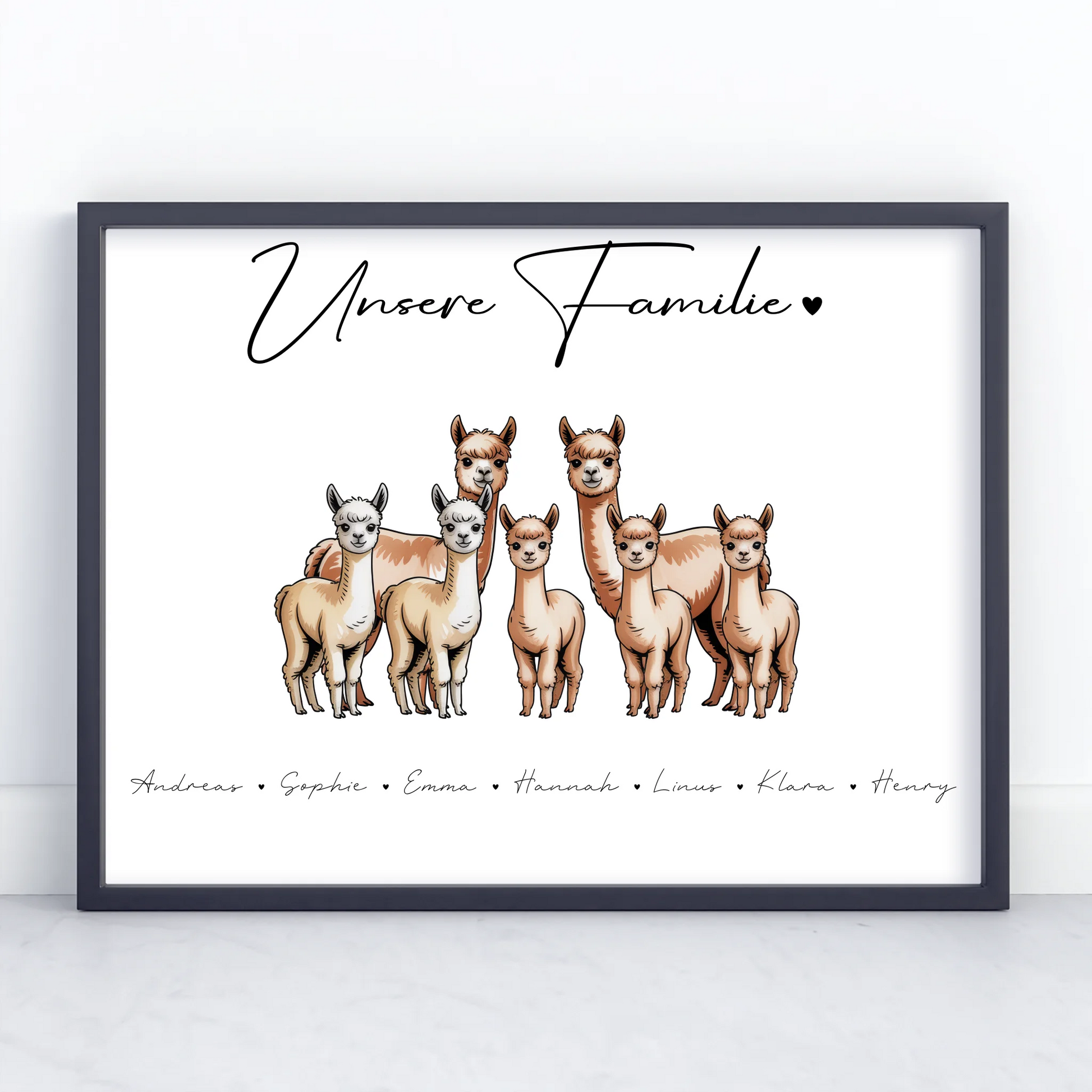 Poster Mit Namen Familie Alpaka Geschenk für Papa Mama Oma Opa – Dein einzigartiges Familienporträt!