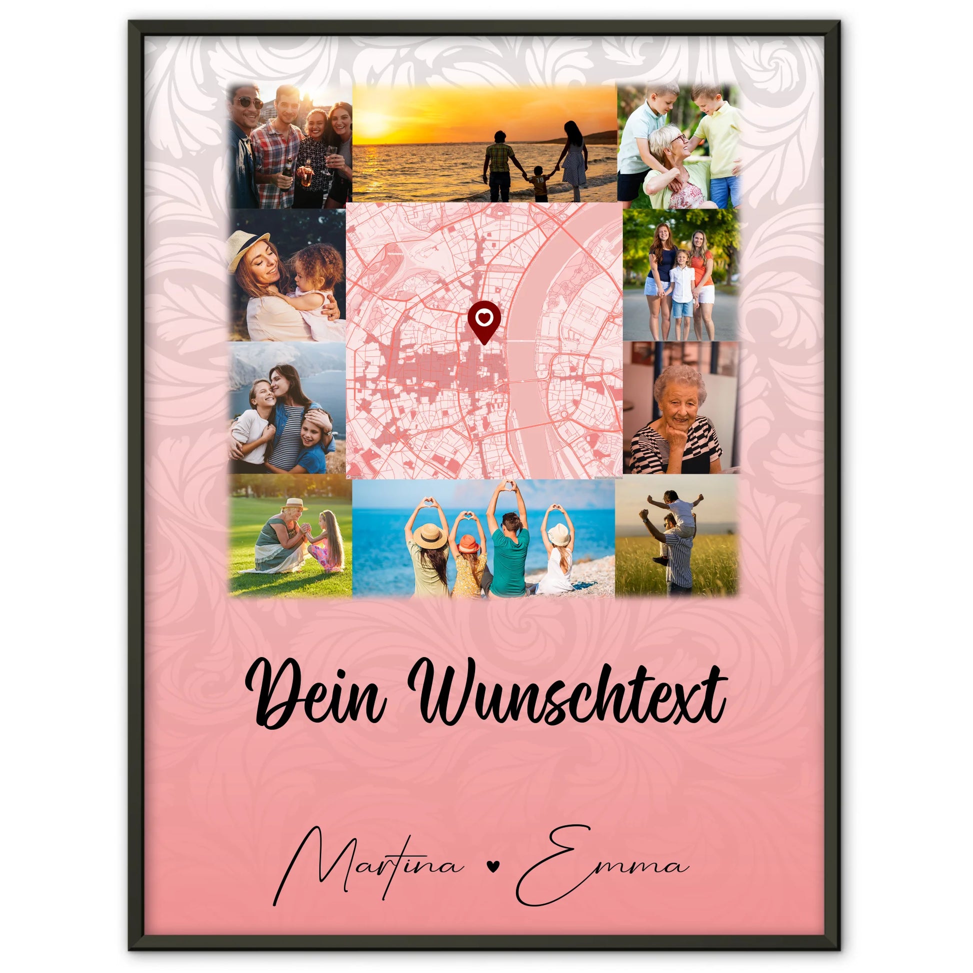 Poster Mit Namen Familie Together mit 10 Fotos Karte in der Mitte und Wunschtext