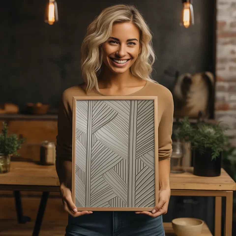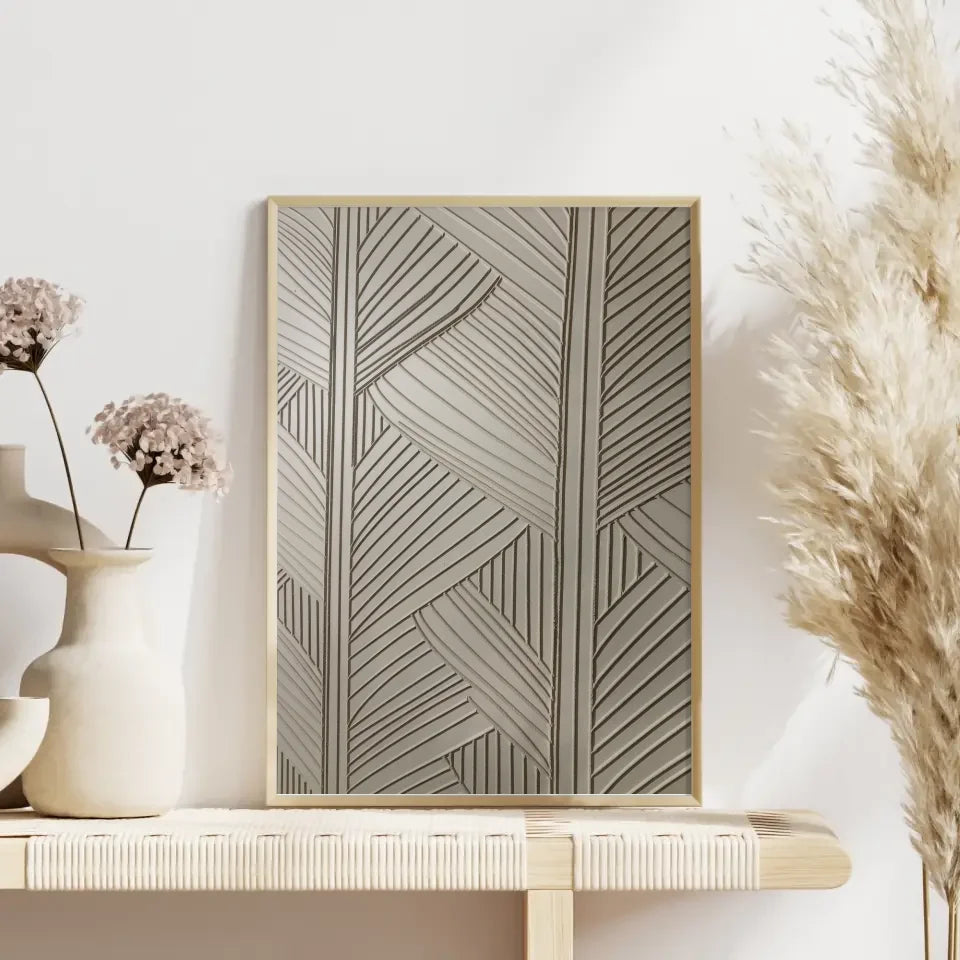 Mit unserem Poster erhältst du nicht nur ein Kunstwerk, sondern ein Statement für deine Inneneinrichtung. Die Kombination aus einzigartiger Textur und palmenartigen Strukturen macht es zur perfekten Wahl für jeden Raum. Ideal für alle, die ein modernes, stilvolles Ambiente schaffen möchten. Mache deine Wände zu einem Blickfang und lasse dich von der kreativen Energie inspirieren, die dieses Poster ausstrahlt. Egal, ob du ein modernes oder klassisches Interieur besitzt, dieses Kunstwerk passt sich harmonisch an jedes Setting an.
